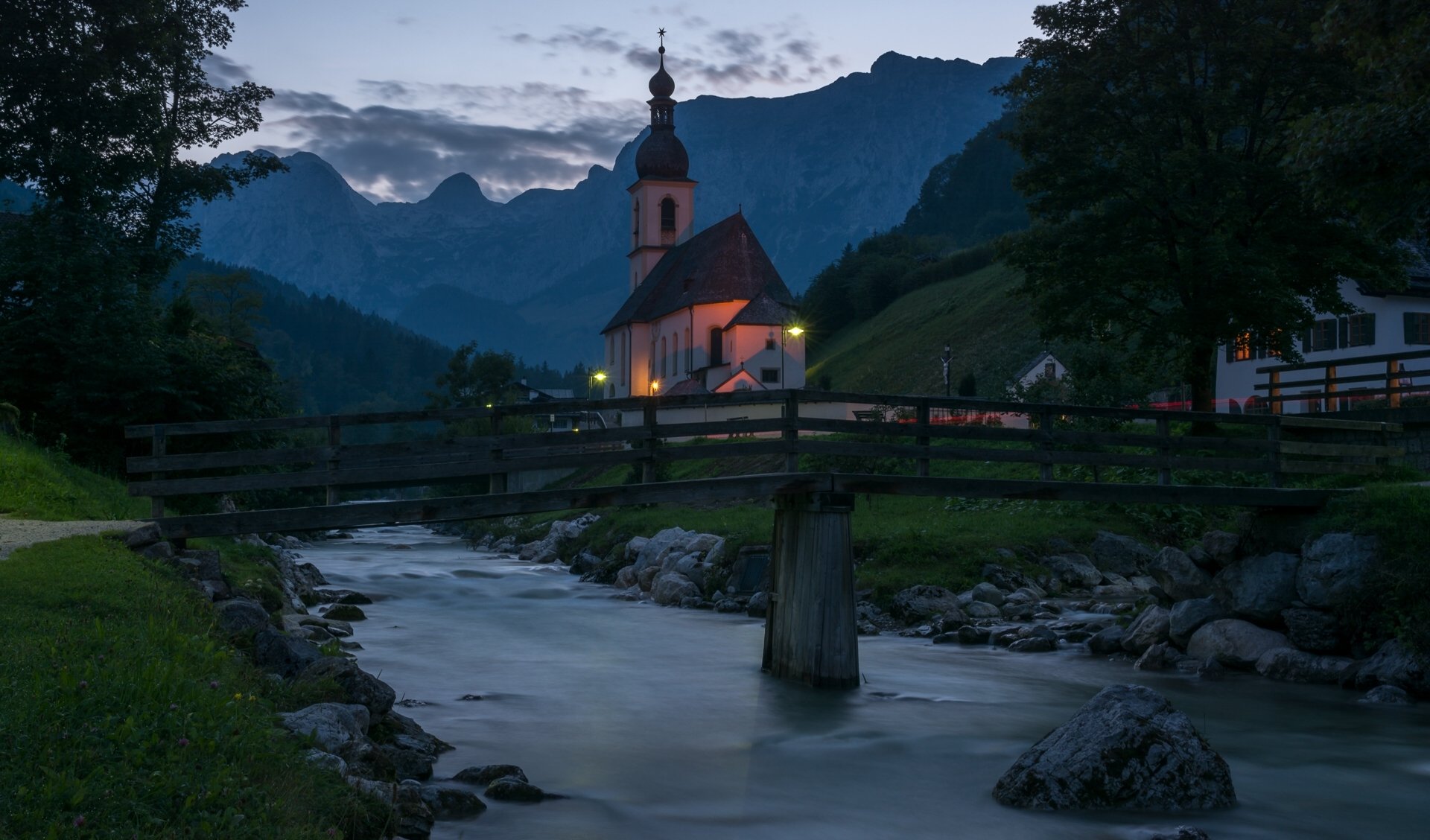 Pont sur la rivière à côté de l'église Saint-Sébastien en Allemagne
