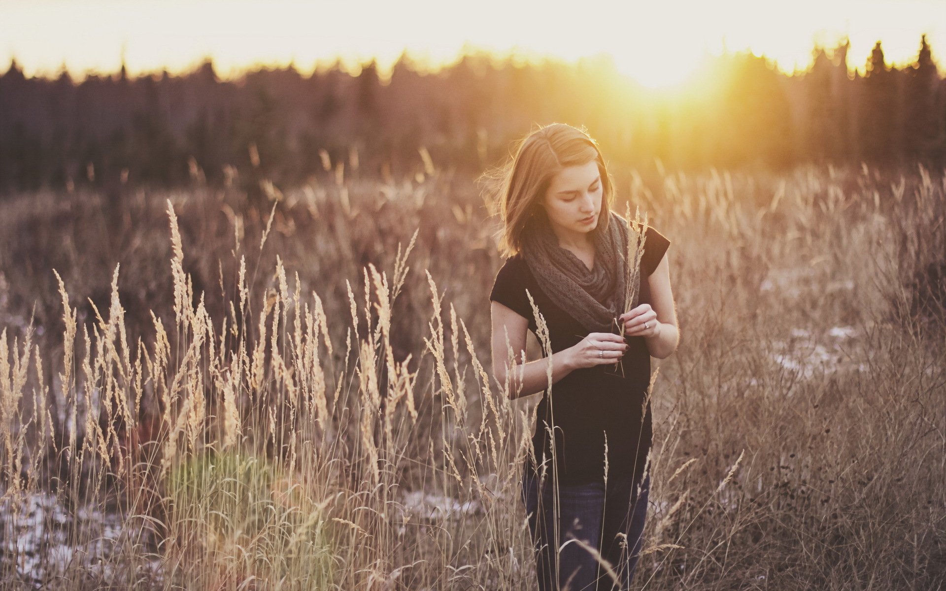La jeune fille avec un gars rencontrent le coucher de soleil sur le lac