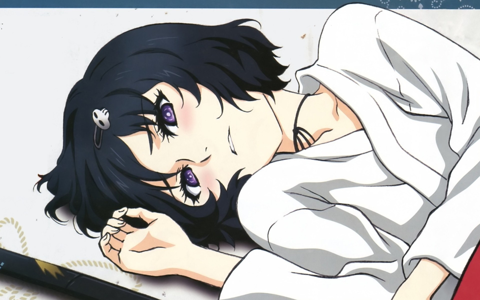 Anime art cheveux noirs dans les pétales de Sakura dans le style japonais traditionnel