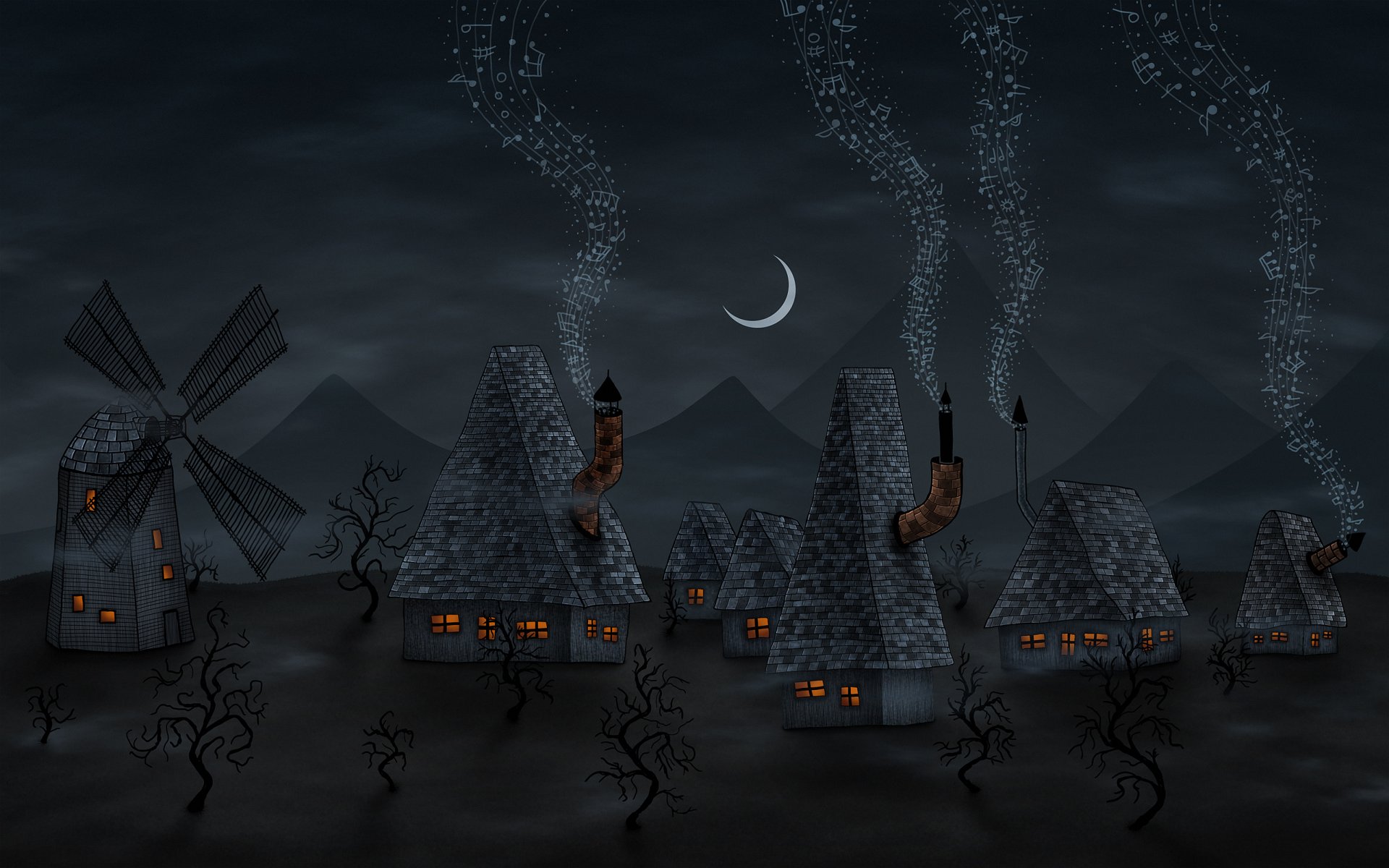 Deux champignons représentant des maisons avec des escaliers et des portesDeux champignons représentant des maisons avec des escaliers et des portes
