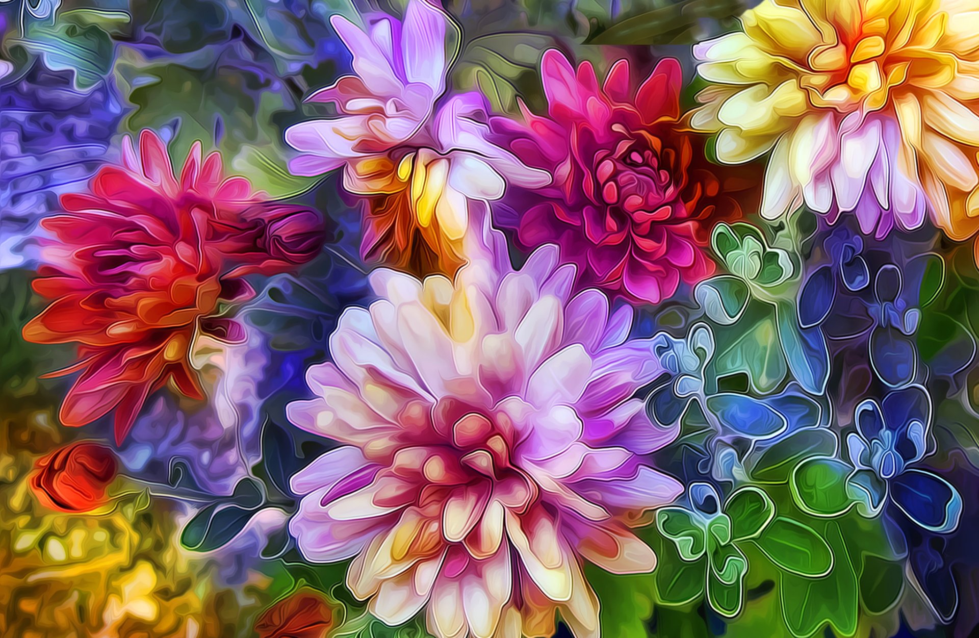 Image lumineuse multicolore avec des fleurs d'astersImage lumineuse multicolore avec des fleurs d'asters