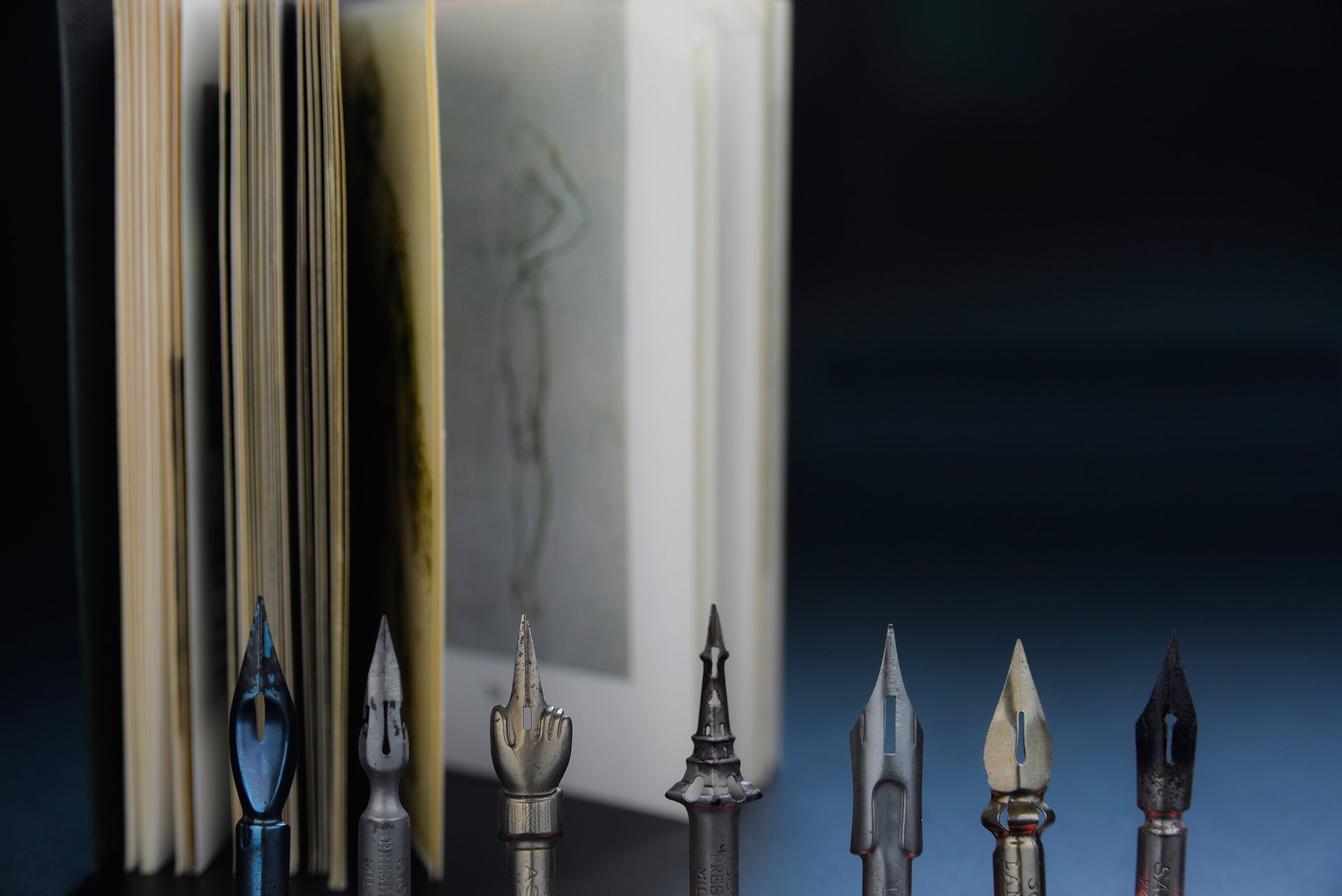 Texte écrit avec une belle écriture sur les pages noires du journal