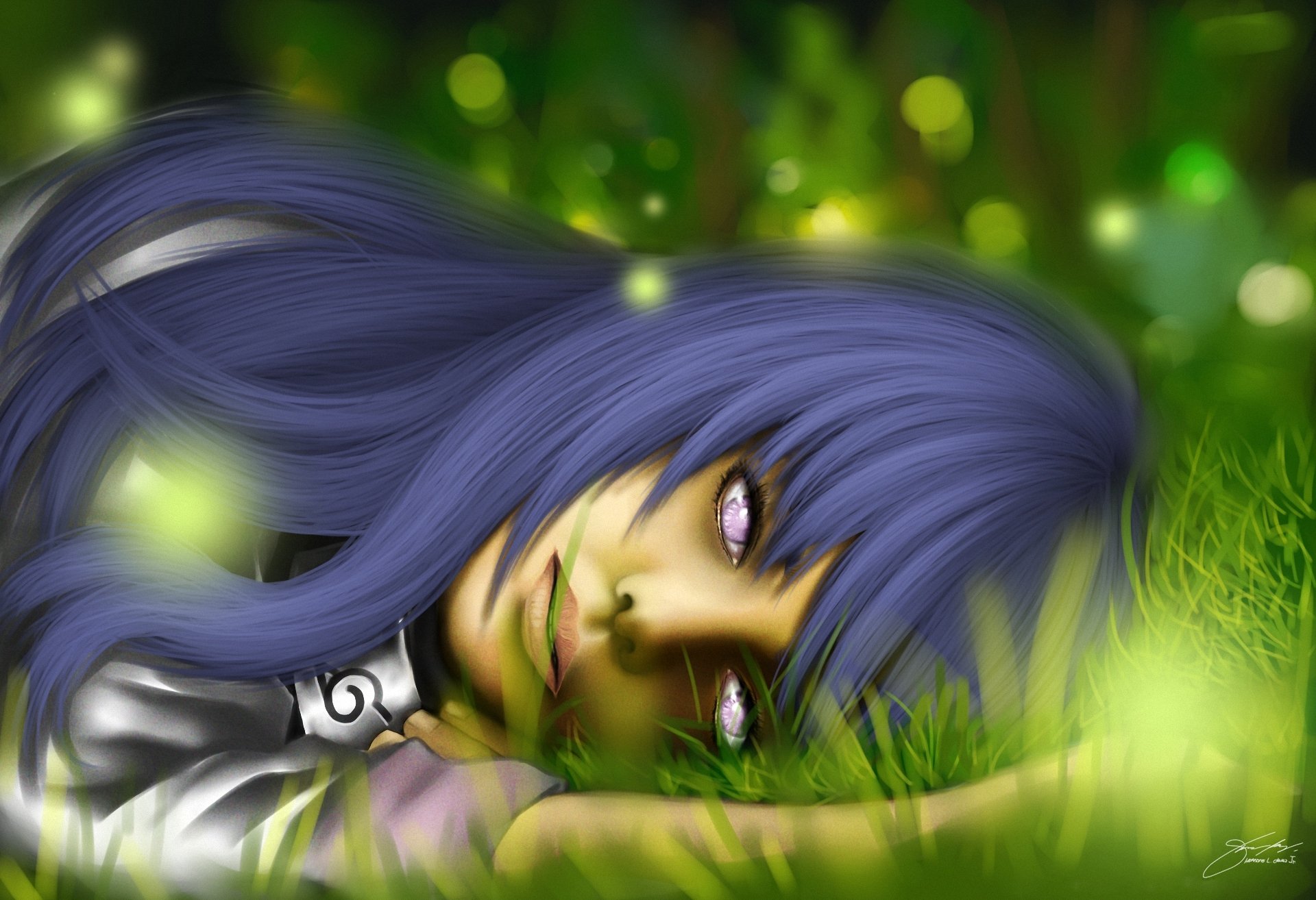 La jeune fille est allée dormir sur l'herbe