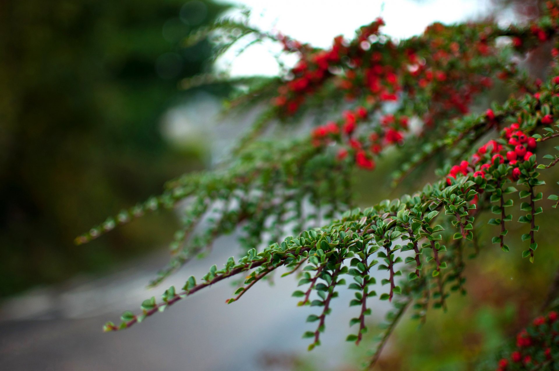 Gros plan d'une branche avec des feuilles et des baiesGros plan d'une branche avec des feuilles et des baies