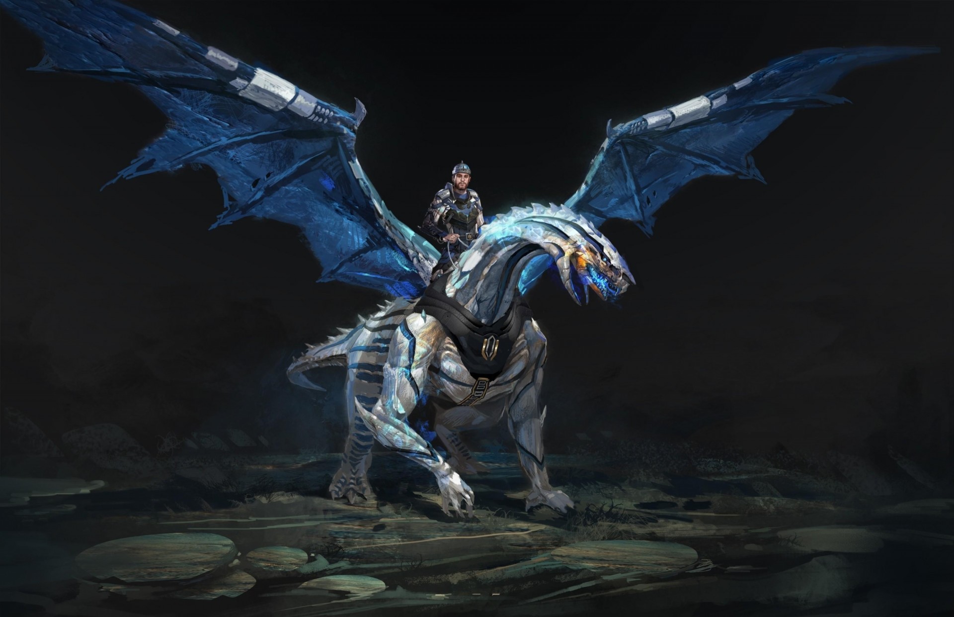 Un énorme dragon avec une attaque de feu dans le paysage du nordUn énorme dragon avec une attaque de feu dans le paysage du Nord