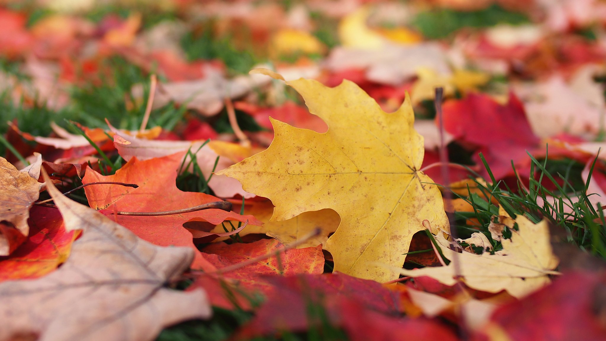 Pelouse d'automne dans un feuillage multicolore
