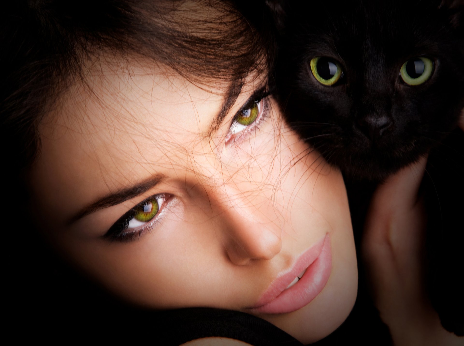Fille aux yeux verts avec chat noir aux yeux vertsFille aux yeux verts avec chat noir aux yeux verts