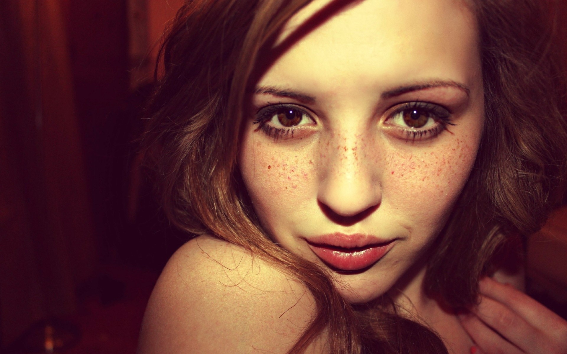 Portrait d'une fille aux yeux bruns sur fond sombrePortrait d'une fille aux yeux bruns sur fond sombre