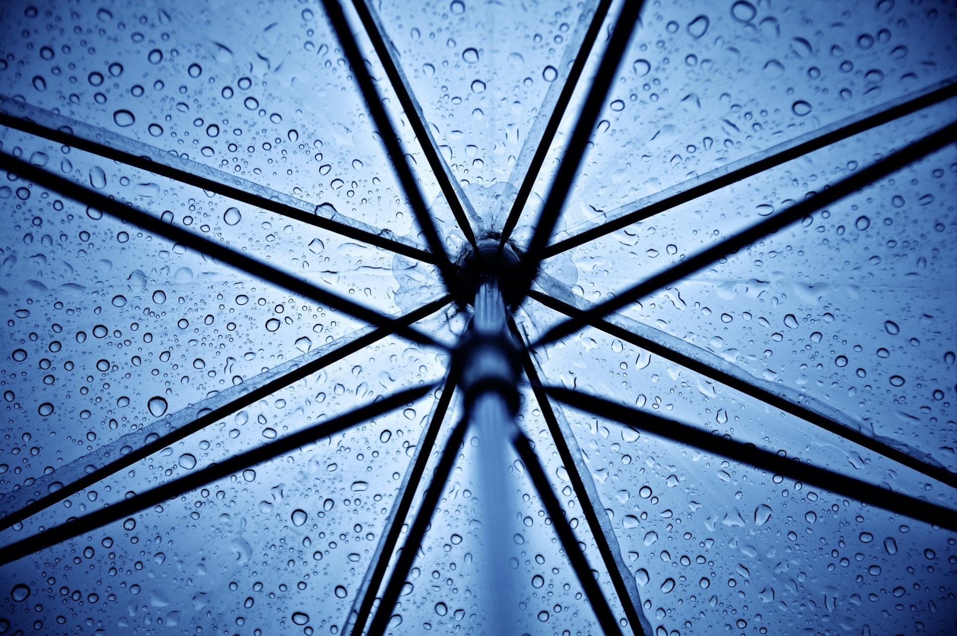 Gouttes de pluie sur le dôme du parapluie