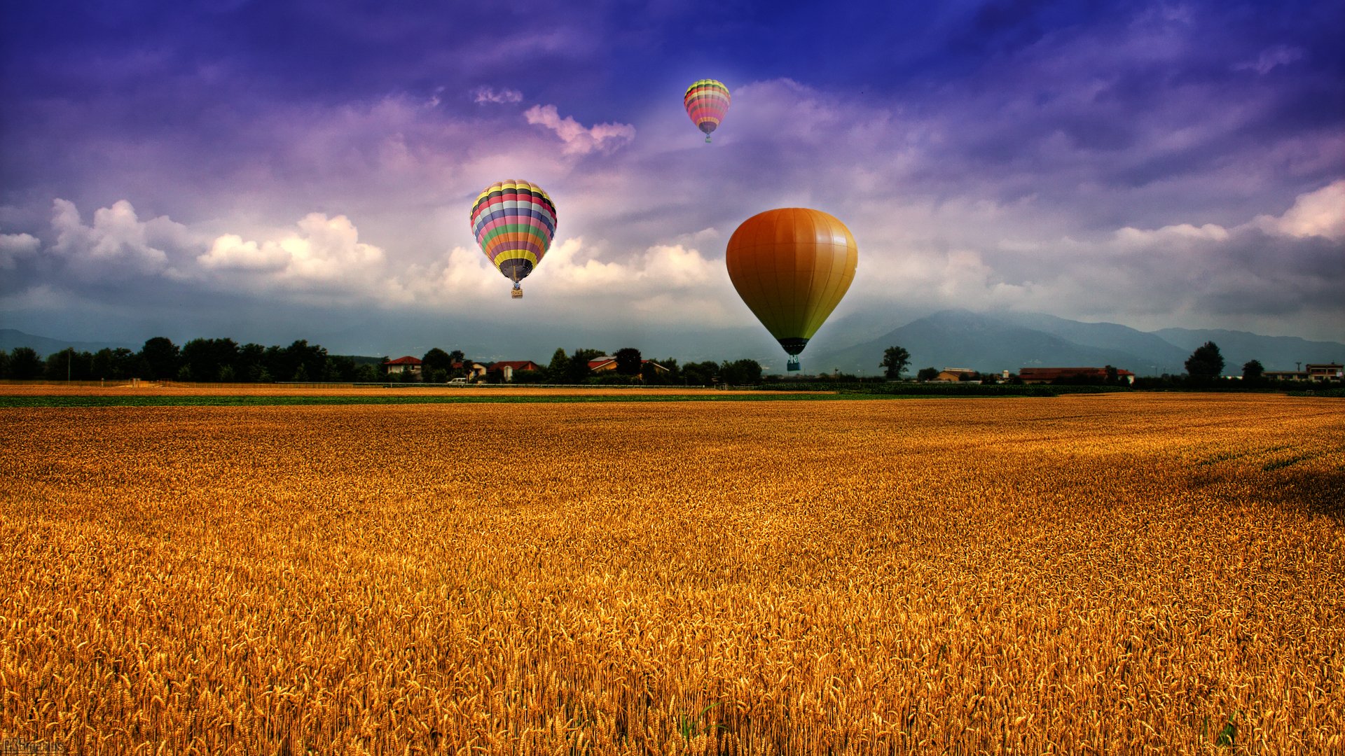 Dés volant sur des ballons sur un fond de ciel sombreDés volant sur des ballons sur un fond de ciel sombre