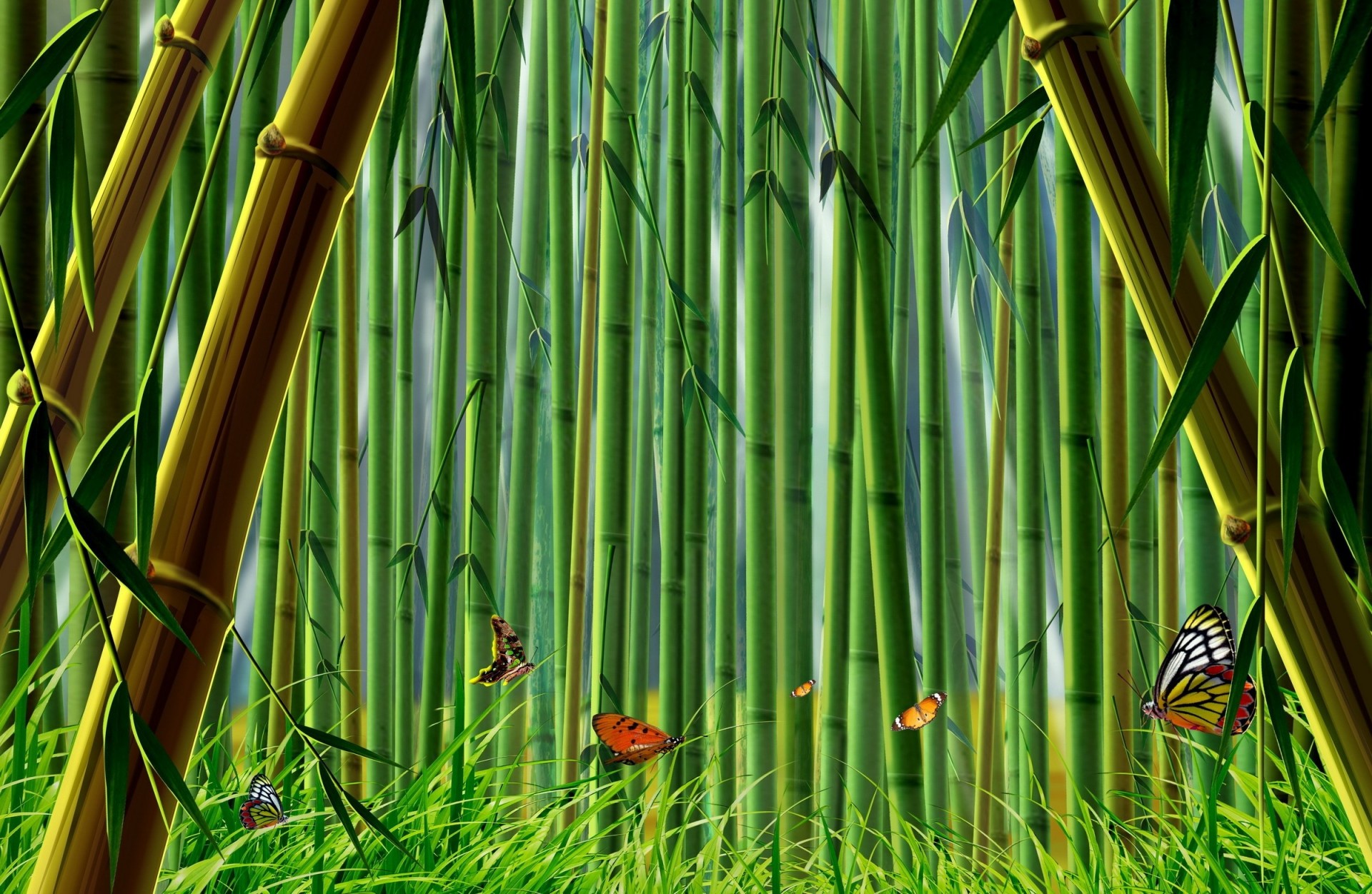 Motif de forêt de bambou et papillons