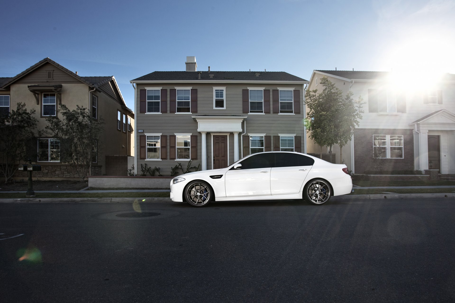 Une bmw blanche et teintée sur le bord de la routeUne BMW blanche et teintée sur le bord de la route