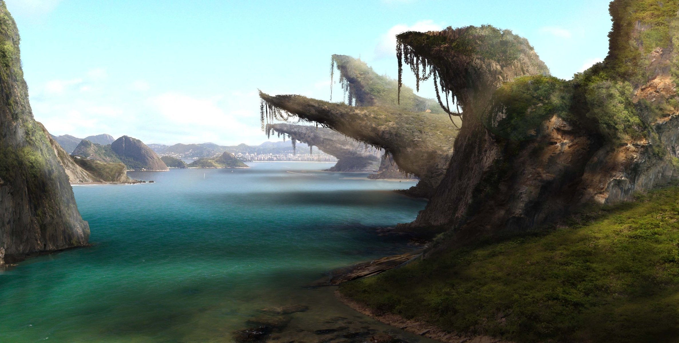 Paysage avec de l'eau, des broussailles et des rochersPaysage avec de l'eau, des broussailles et des rochers