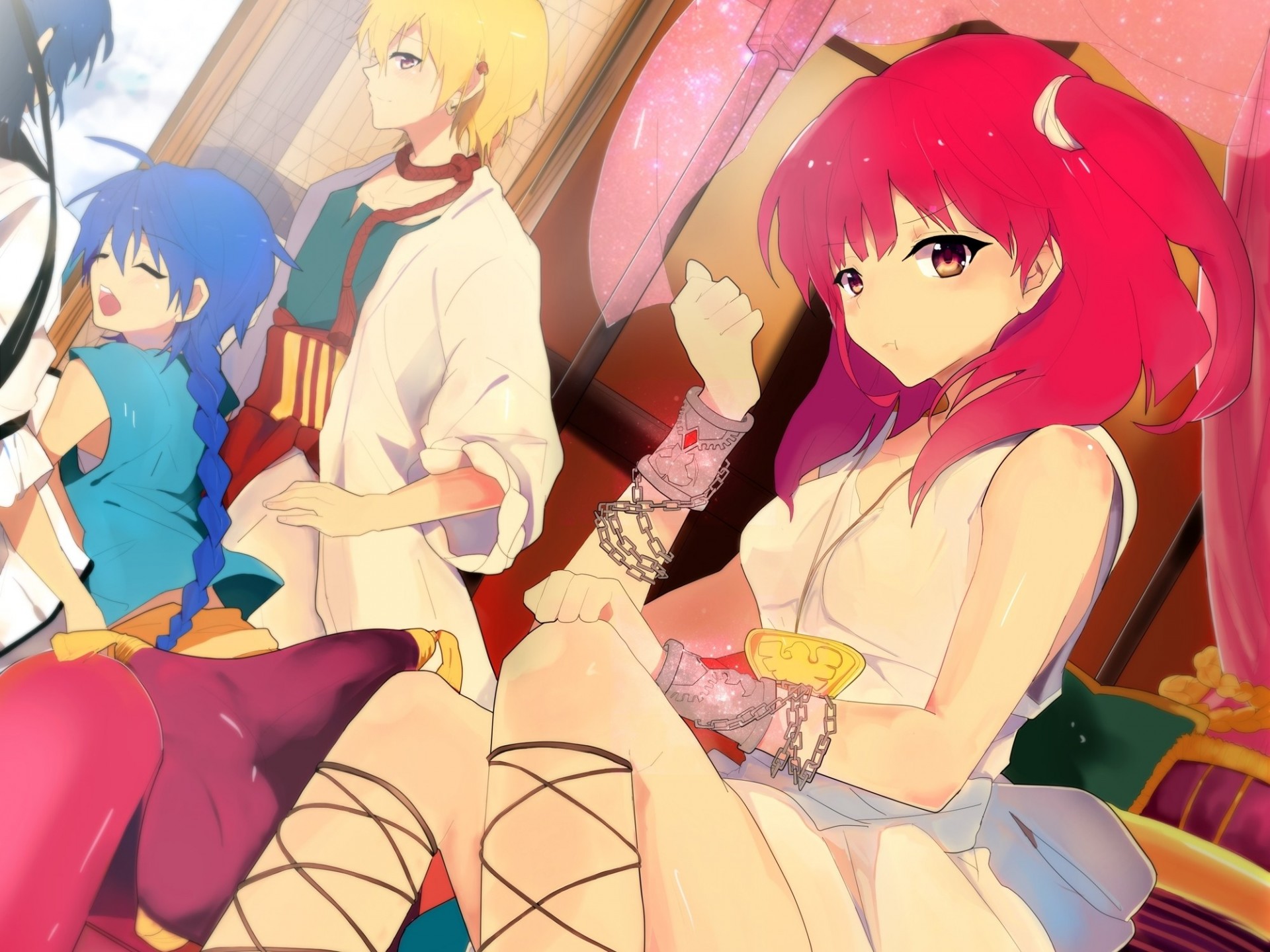 Fille aux yeux rouges avec des cheveux roses clins d'oeil