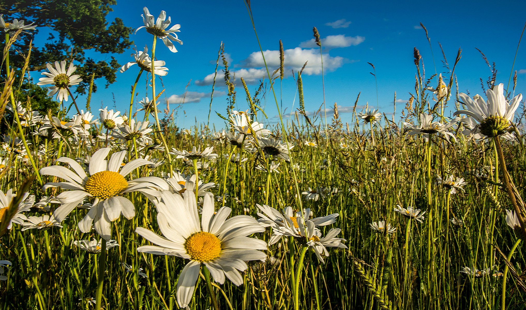 Gros plan de marguerites sur fond d'environnement naturelGros plan de marguerites sur fond d'environnement naturel