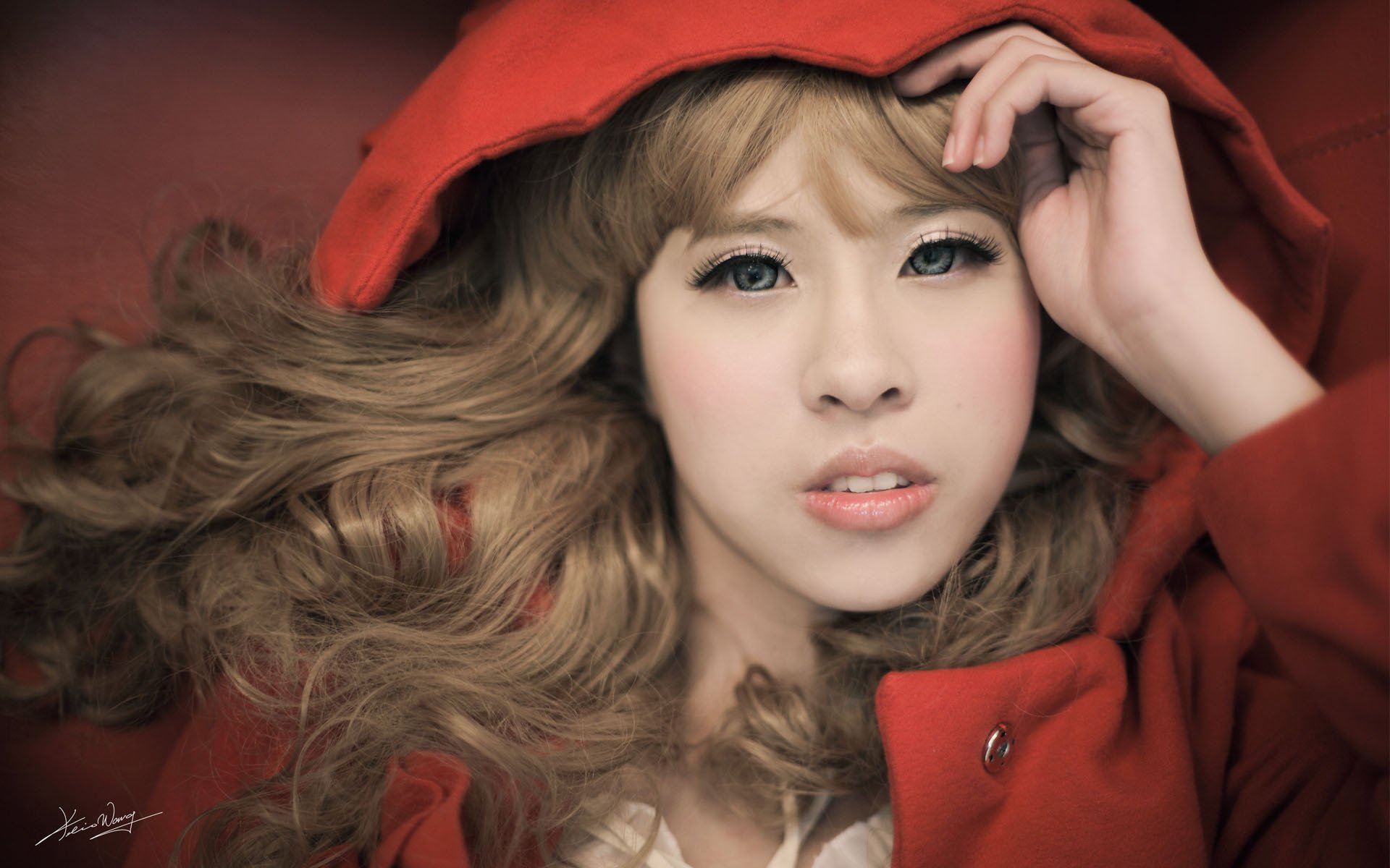 Visage de la jeune fille dans le capot en gros planVisage de la jeune fille dans le capot en gros plan