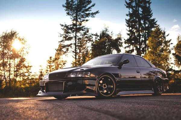 Rouge et bleu voiture Toyota Mark 2 et Chaizer