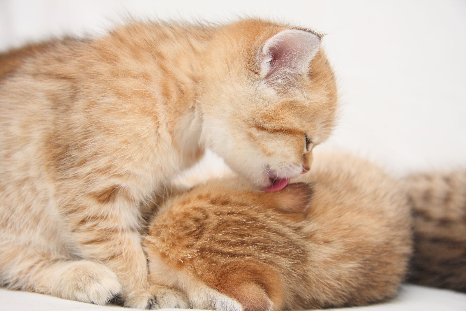 Mignon chaton lèche un autre chaton