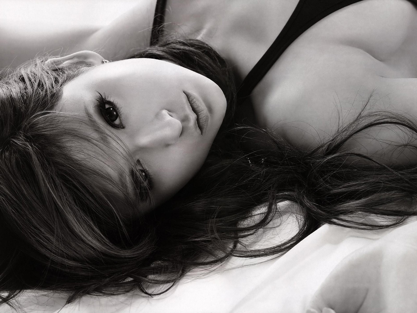 Regard chaud du modèle sur la photo en noir et blancRegard chaud du modèle sur la photo en noir et blanc