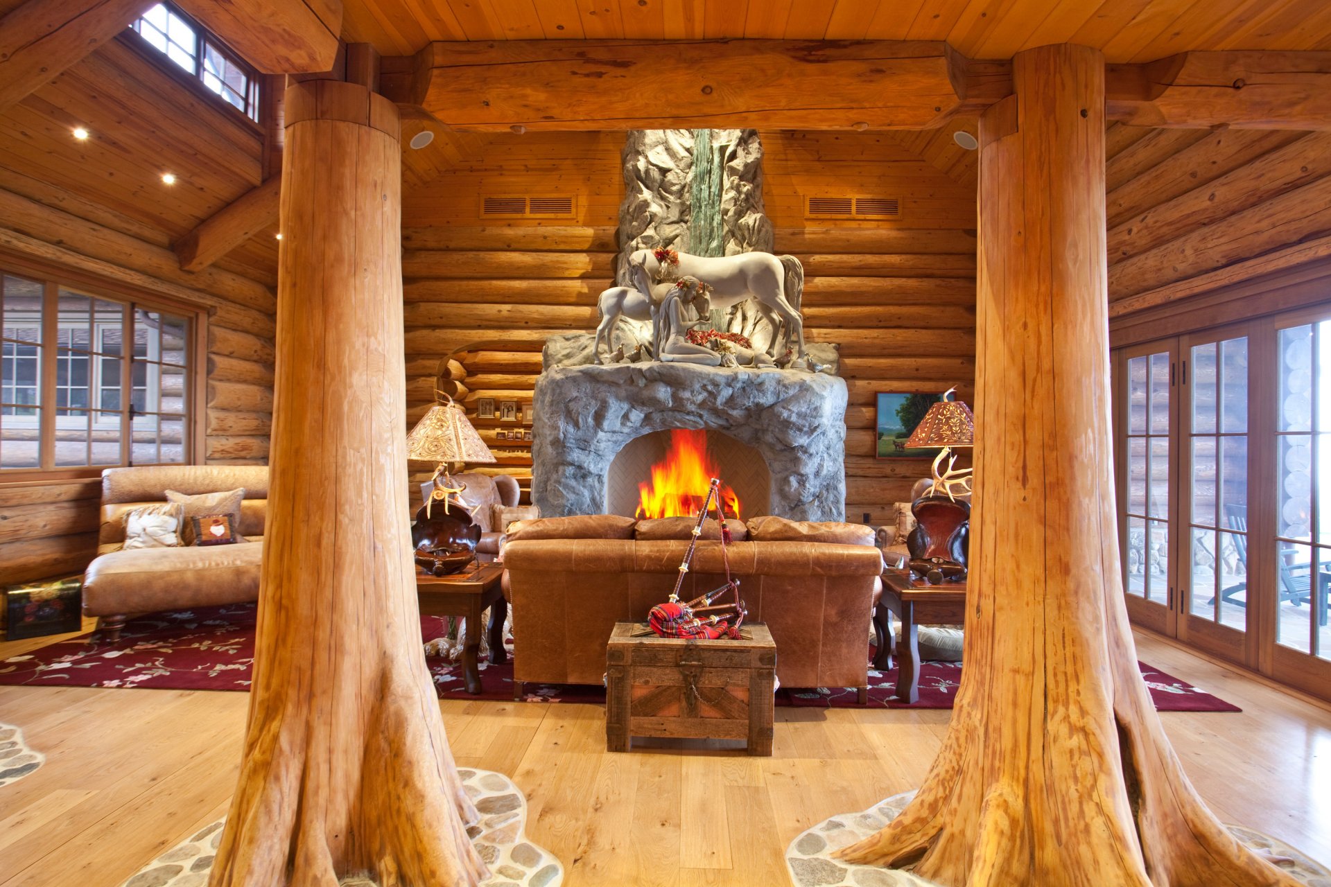 Salon intérieur avec cheminée avec de hauts plafondsSalon intérieur avec cheminée avec de hauts plafonds