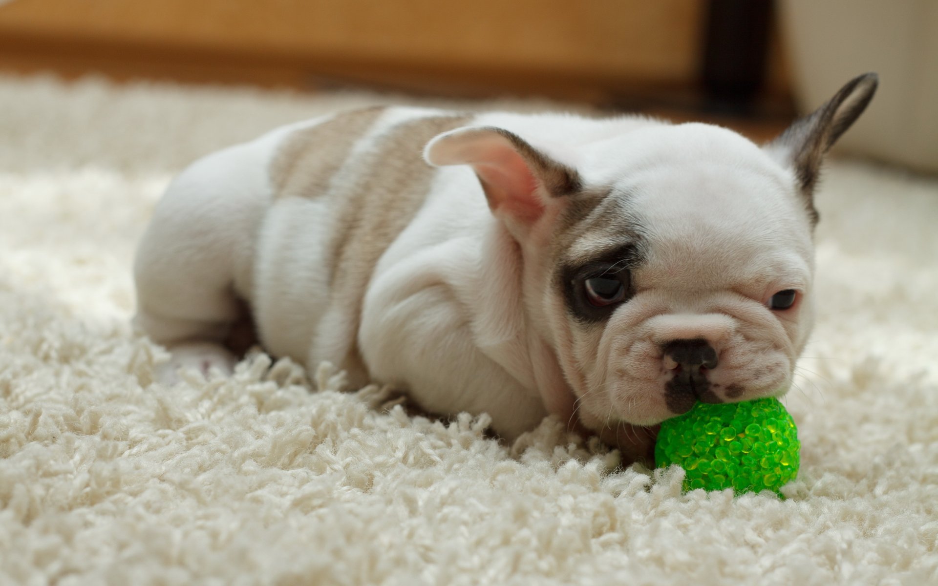 Chiot blanc en cours d'exécution sur une Prairie verte