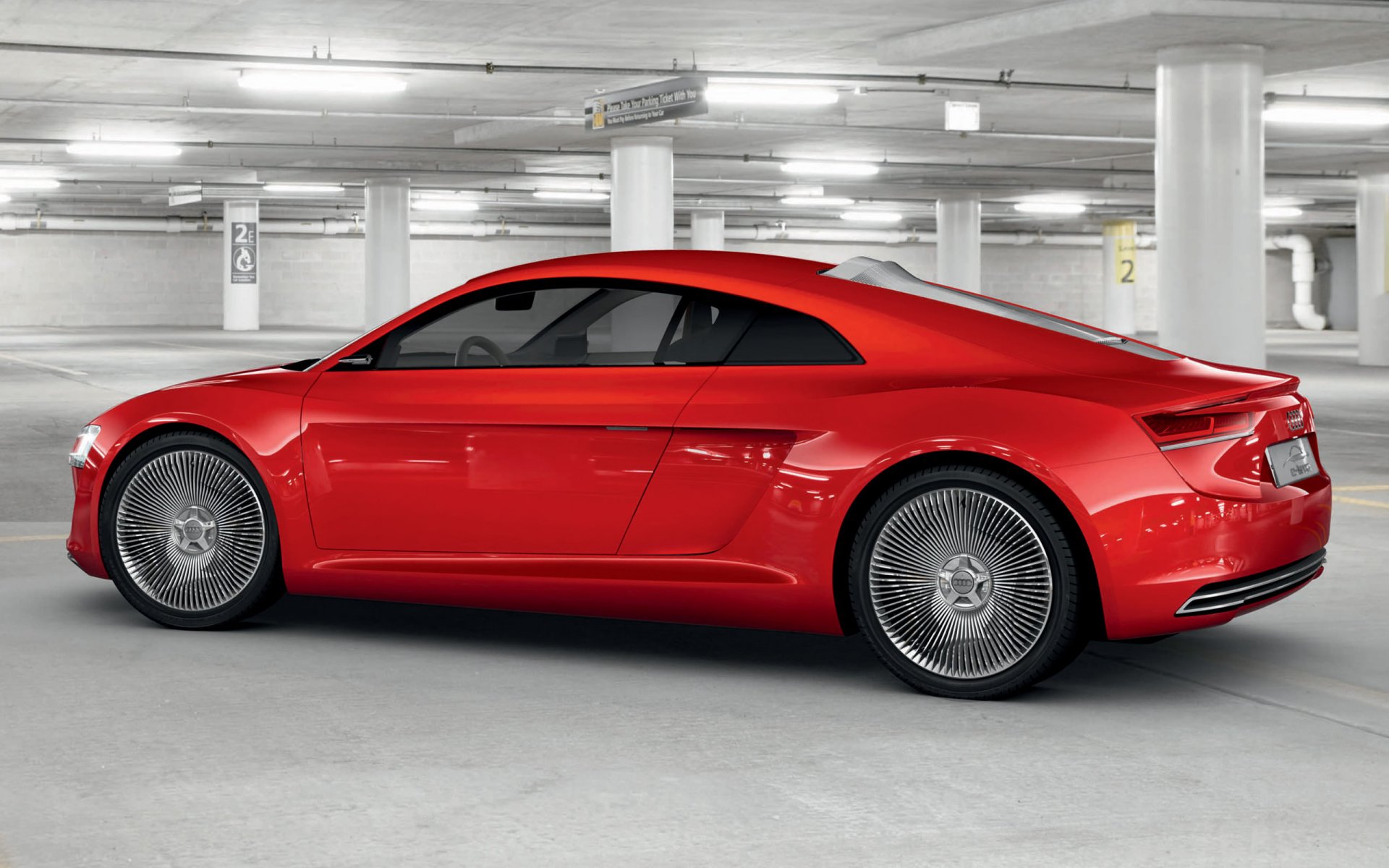 Voiture rouge Audi dans le parking souterrain