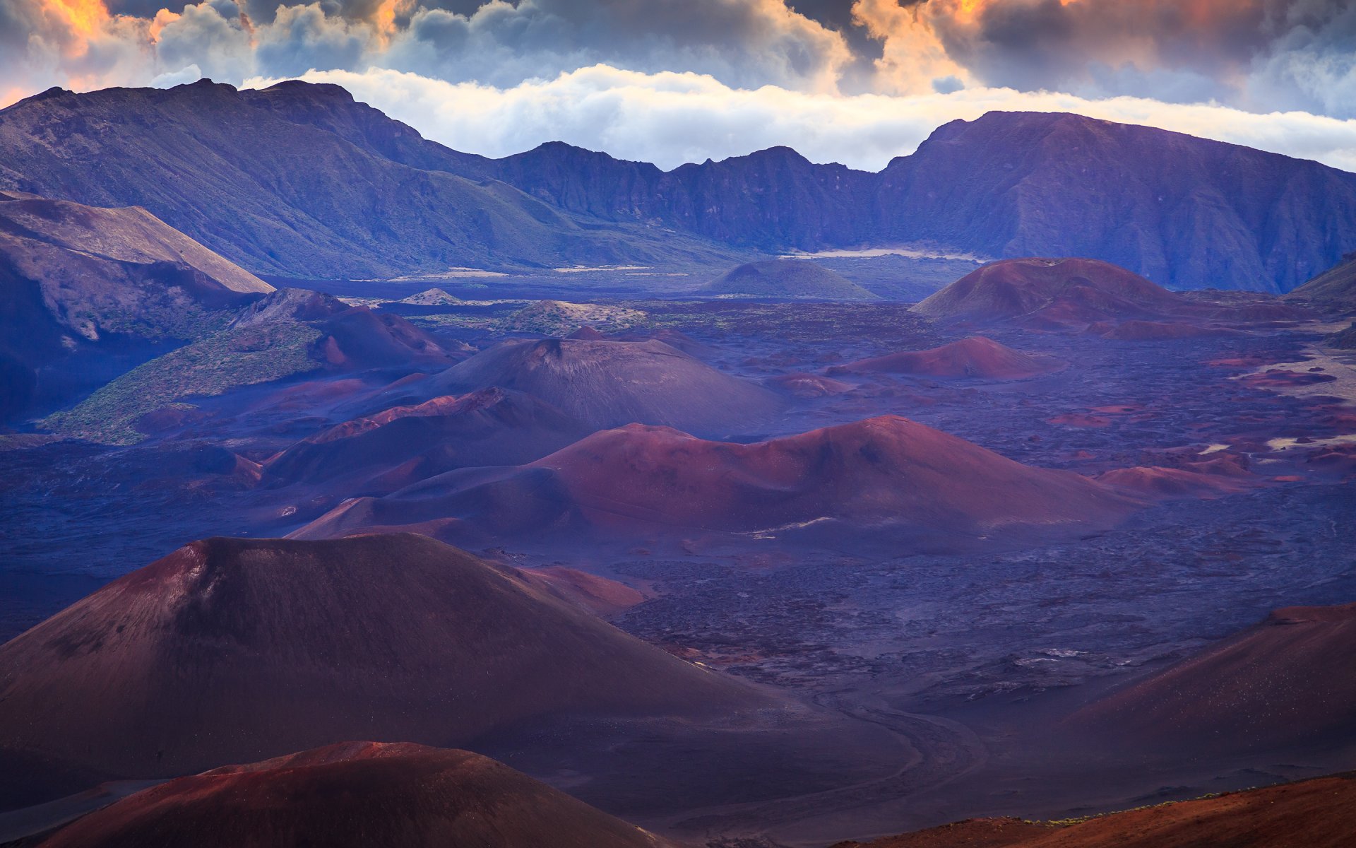 Paysage de montagne et de mer au coucher du soleil