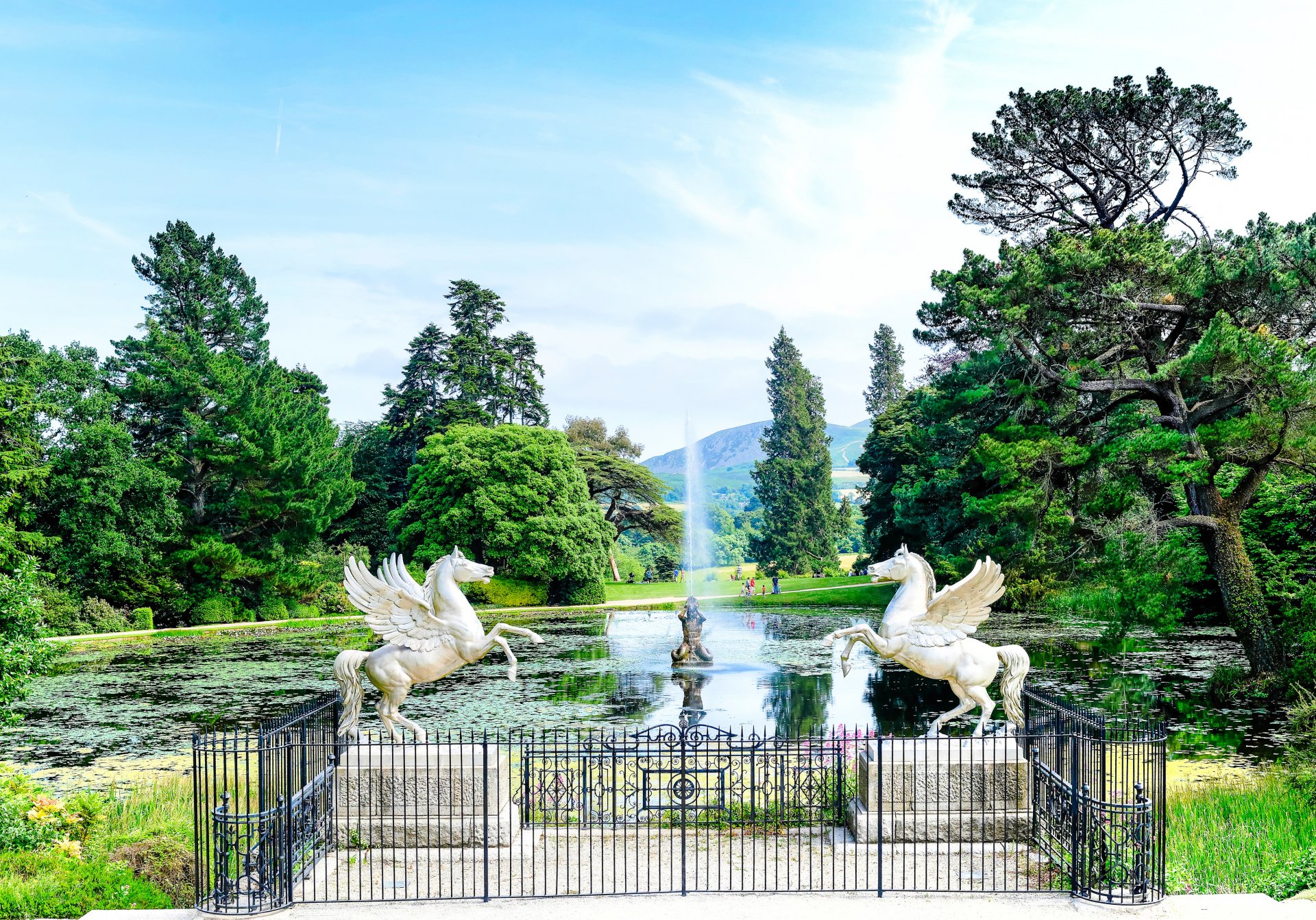 Fontaine élégante avec des pegasus dans le comté de wicklowFontaine élégante avec des Pegasus dans le comté de Wicklow