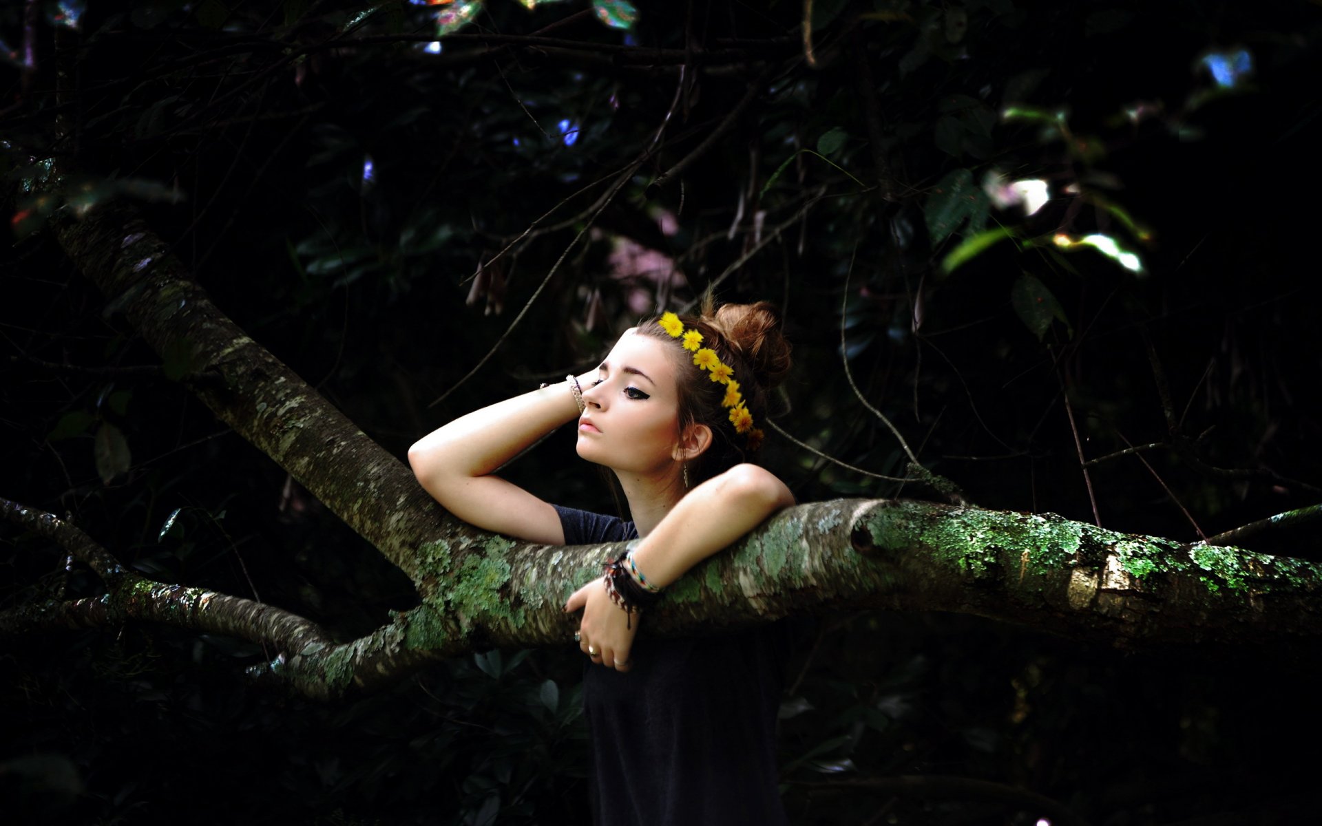 Image d'une fille avec une couronne de lilas sur la têteImage d'une fille avec une Couronne de lilas sur la tête