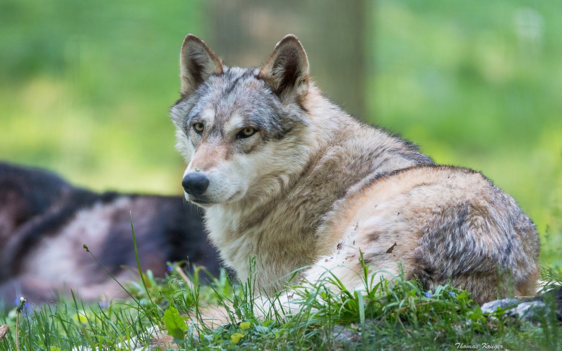 Loup reposant sur l'herbe