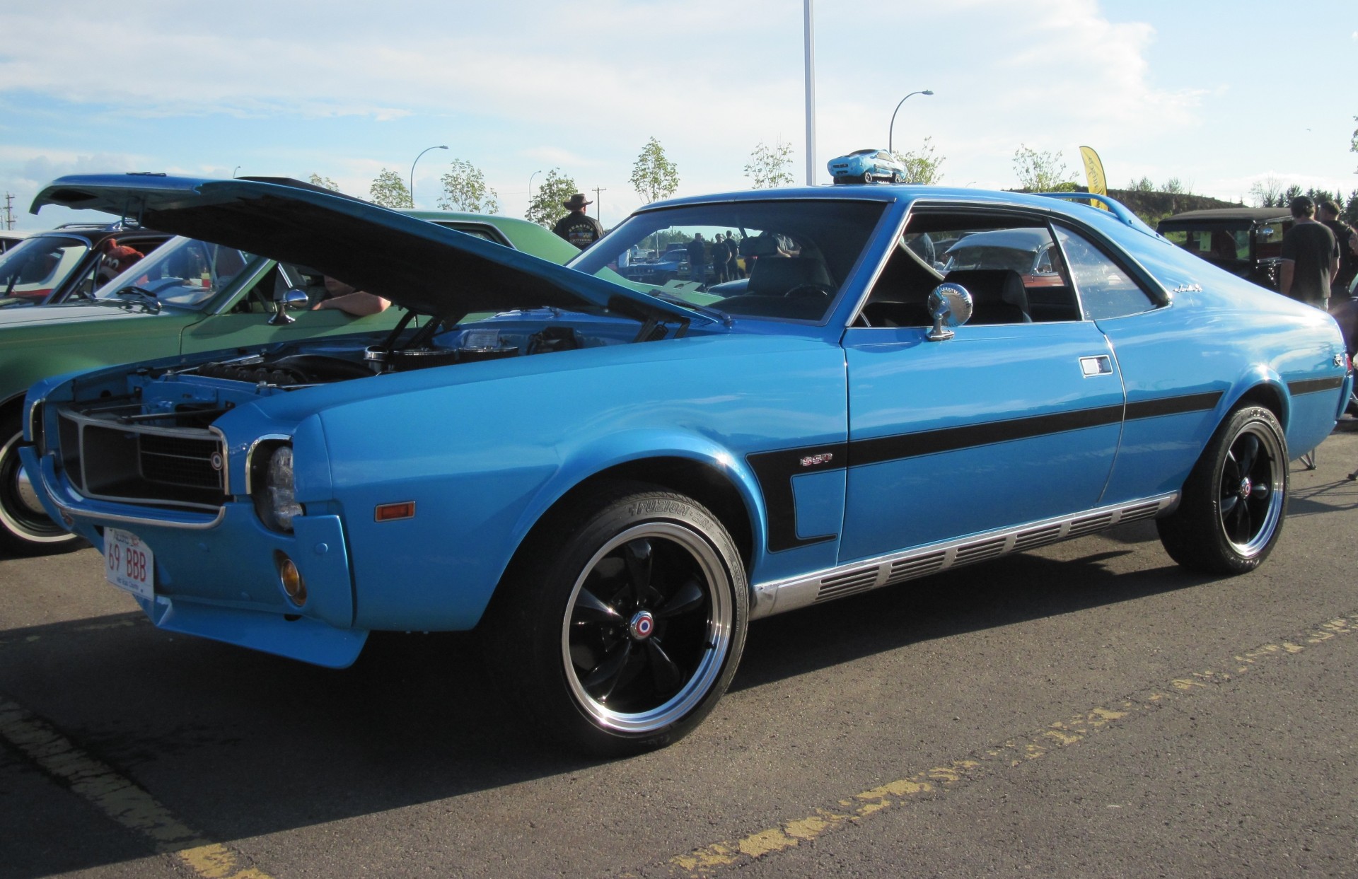 Voiture bleue avec capot ouvert et bande noire sur la carrosserieVoiture bleue avec capot ouvert et bande noire sur la carrosserie