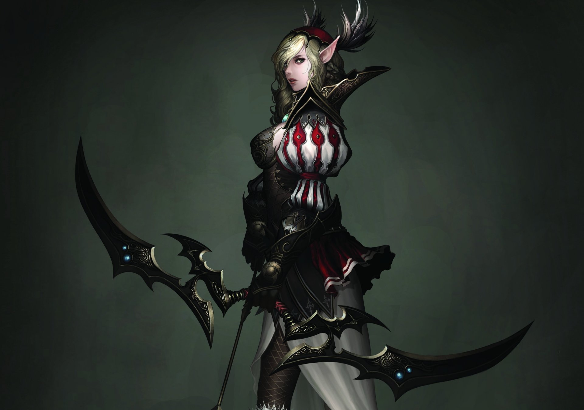 Fille guerrière en armure et avec une épée dans les mainsFille guerrière en armure et avec une épée dans les mains