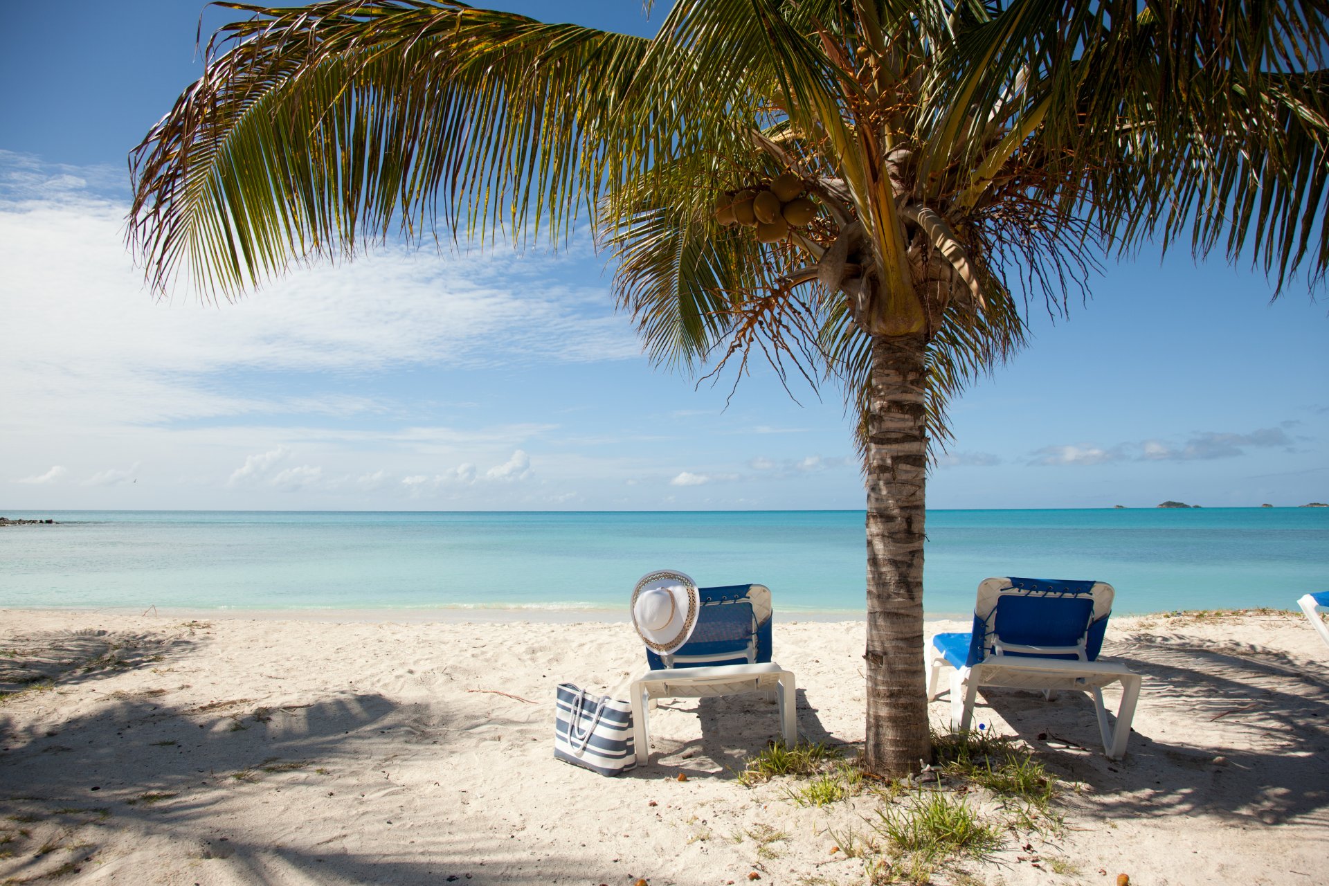 Vacances d'été sur la plage et le soleil. Le sable est chaud, les palmiers créent de l'ombre