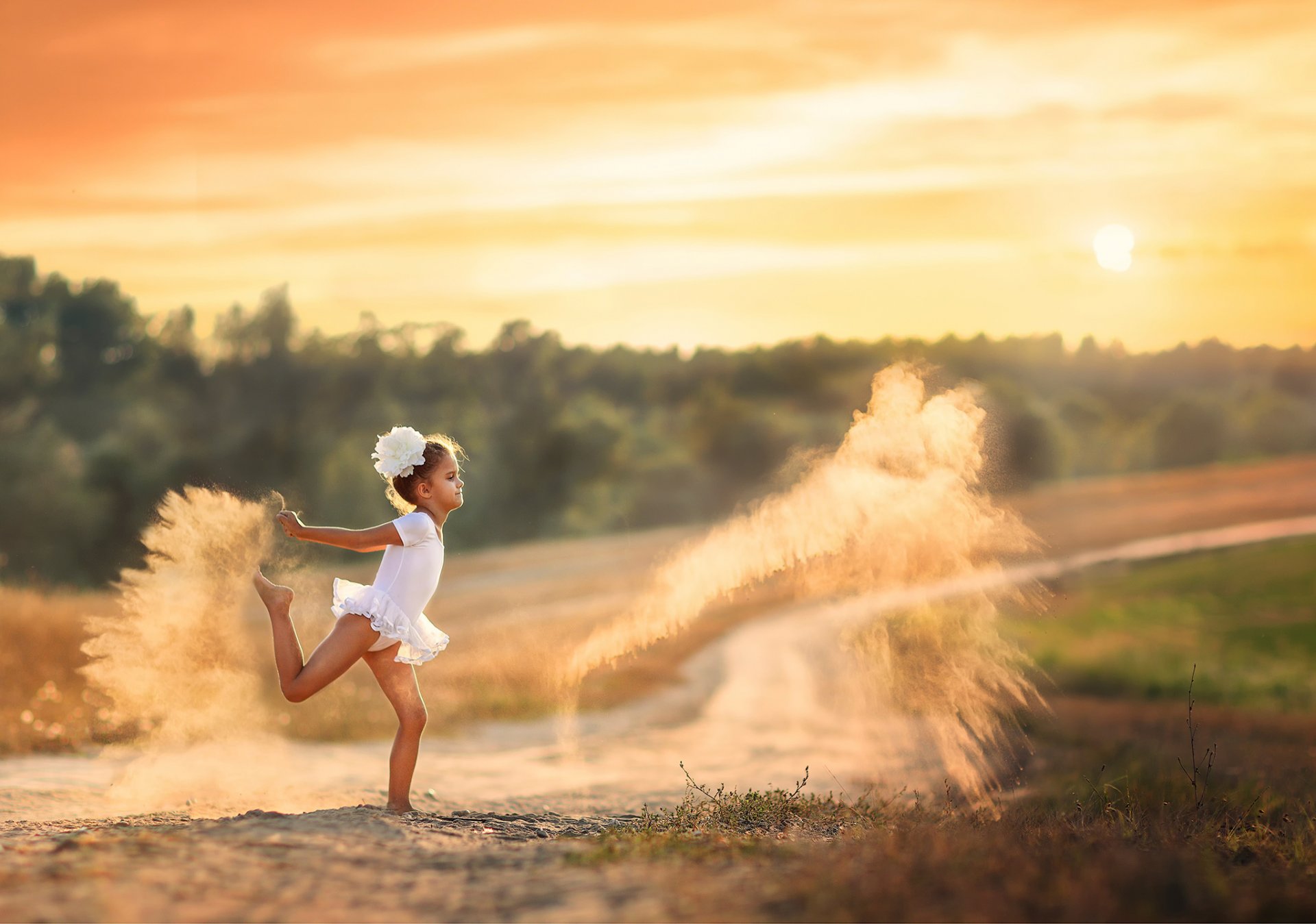 Une fille dansante sur песчанной sentier