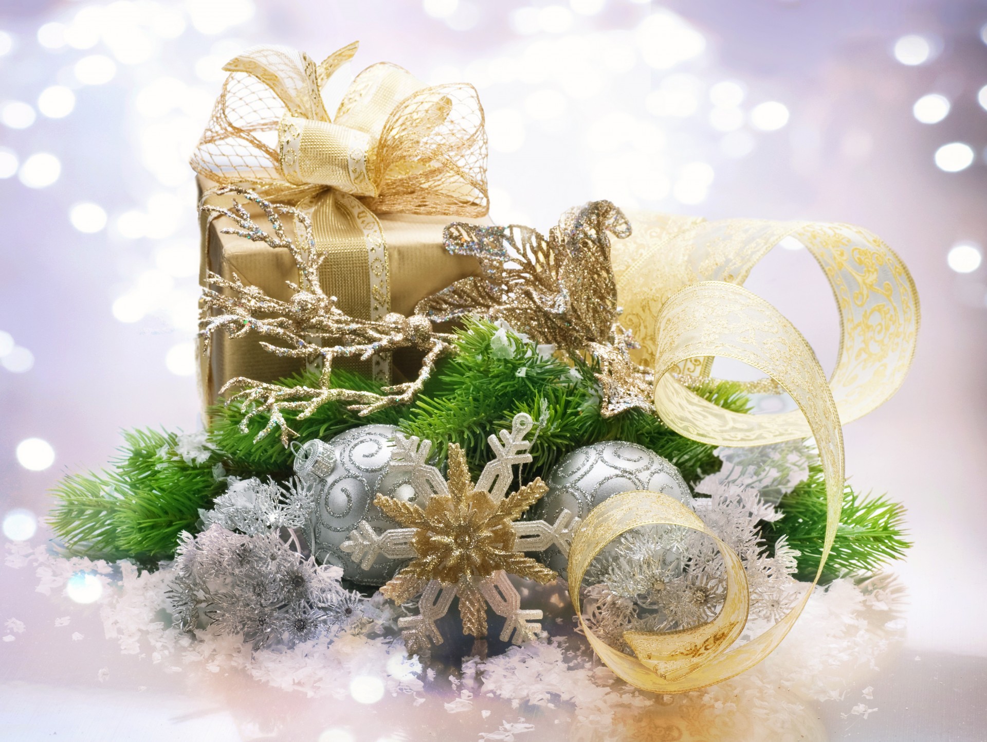 Décorations de Noël sur fond avec des reflets