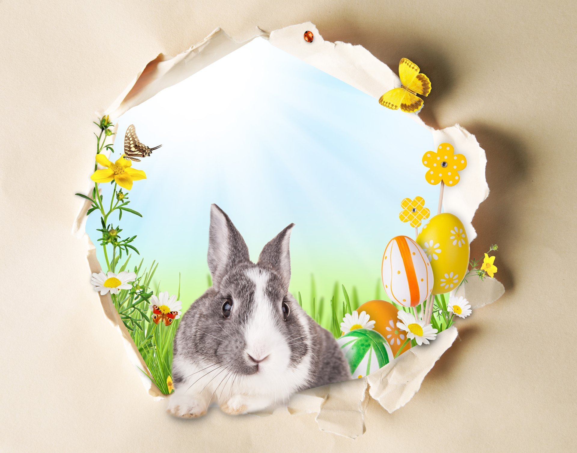 Panier de pâques avec des oeufs et panier de tulipesPanier de Pâques avec des oeufs et panier de tulipes