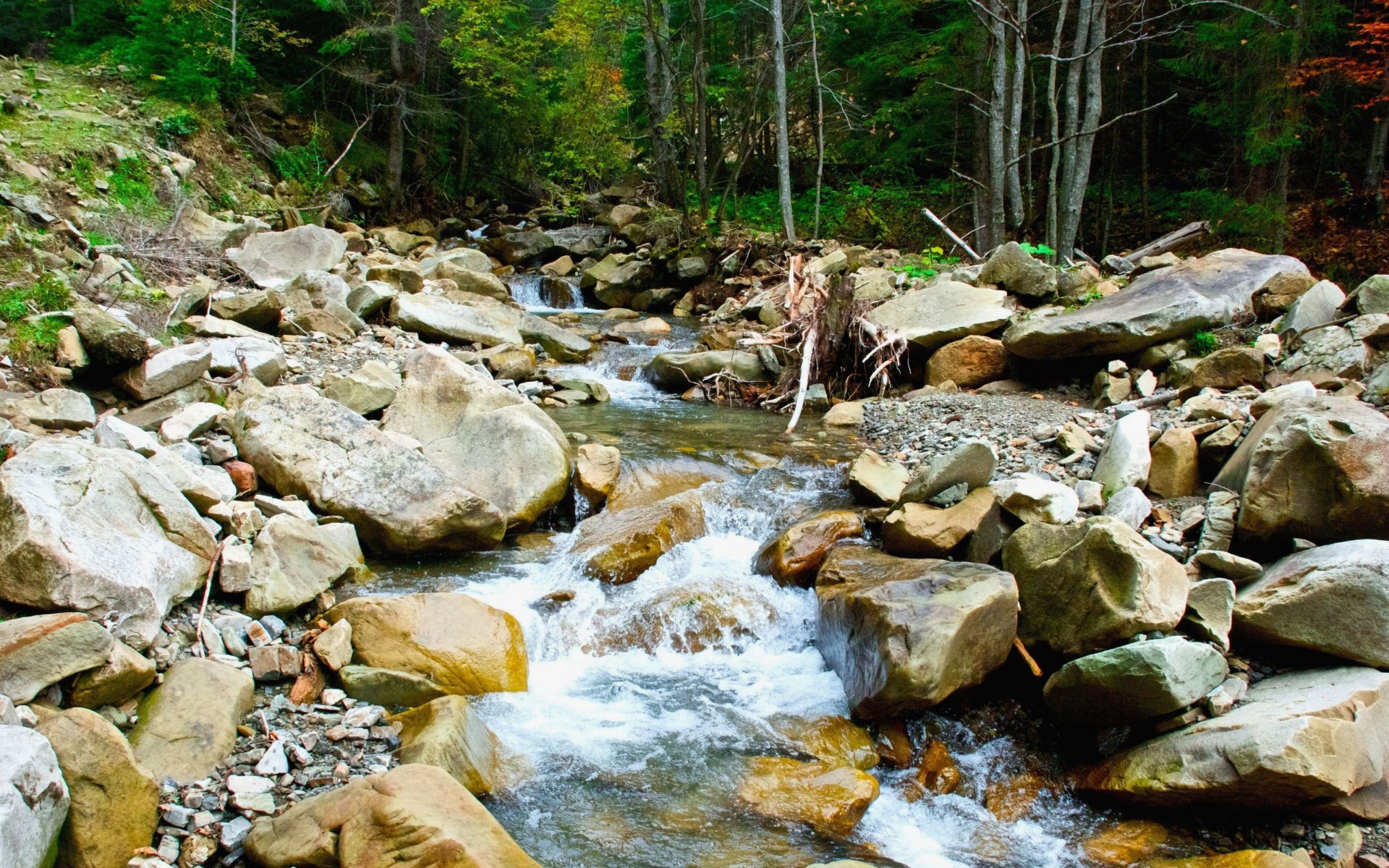 Chute d eau sur fond de feuilles multicolores d automne