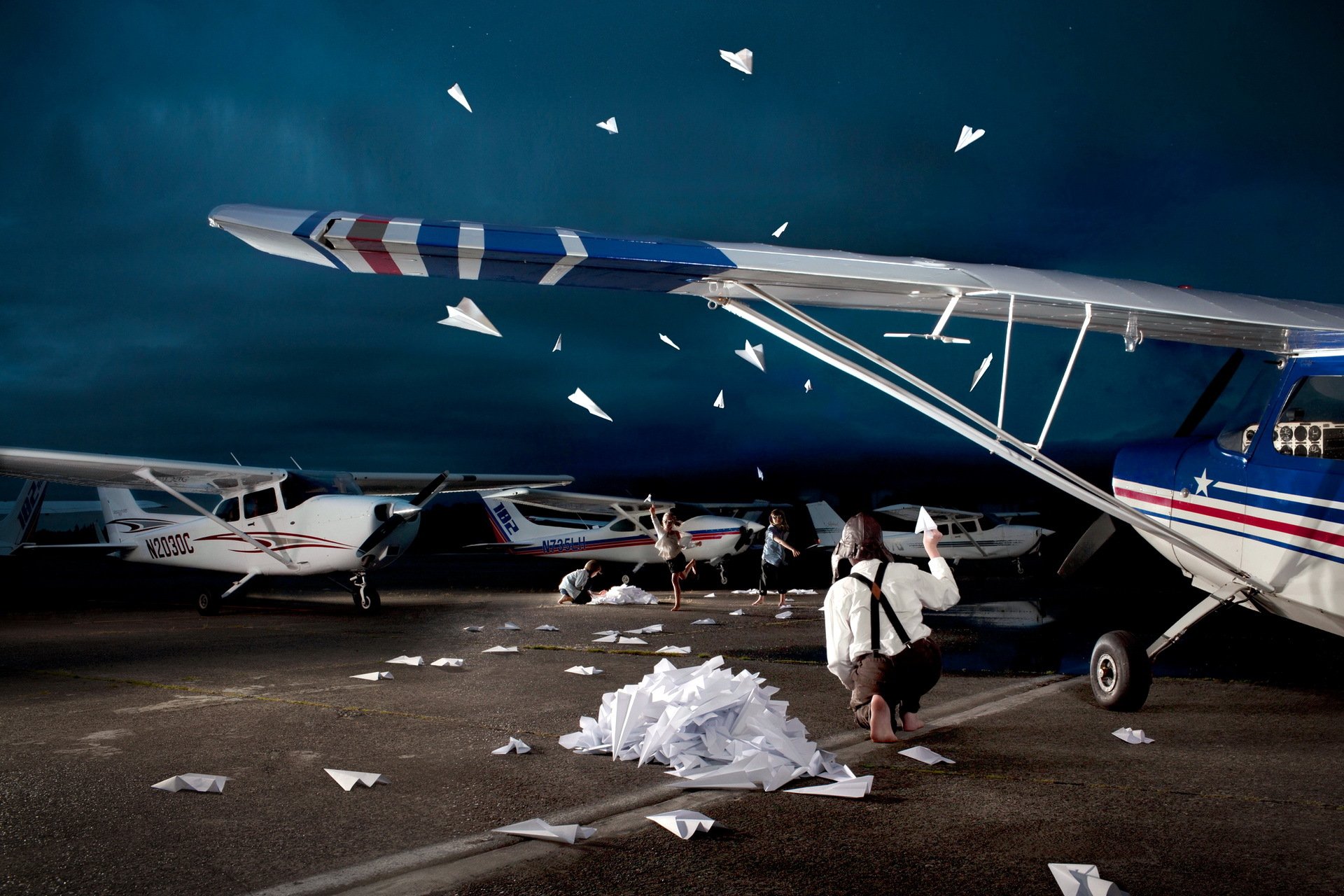 Un homme à l'aéroport de lance des avions en papierUn homme à l'aéroport de lance des avions en papier