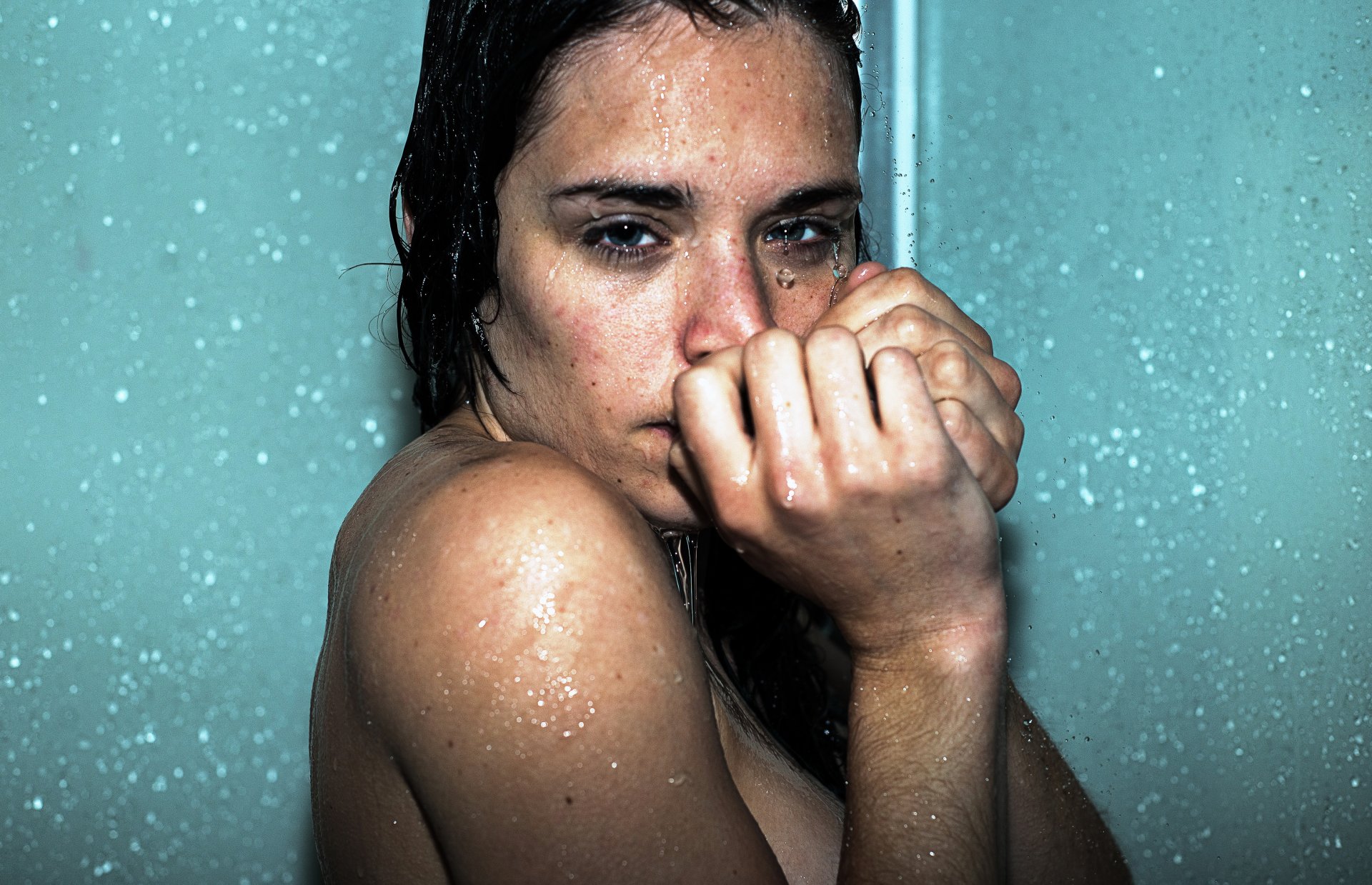 La jeune fille aux cheveux sombres est pas sous la doucheLa jeune fille aux cheveux sombres est pas sous la douche