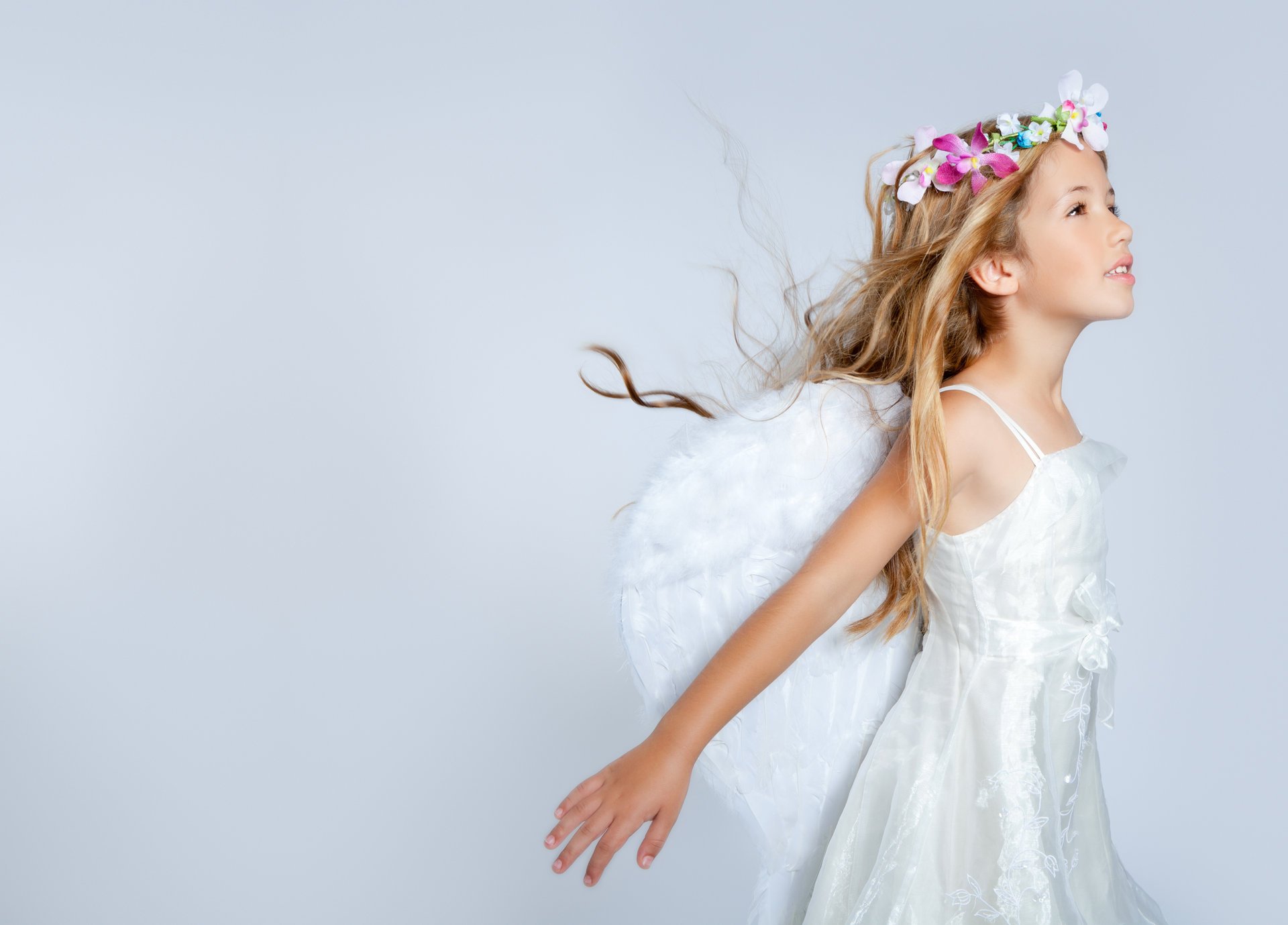 Fille avec des ailes et une couronne sur fond blancFille avec des ailes et une Couronne sur fond blanc