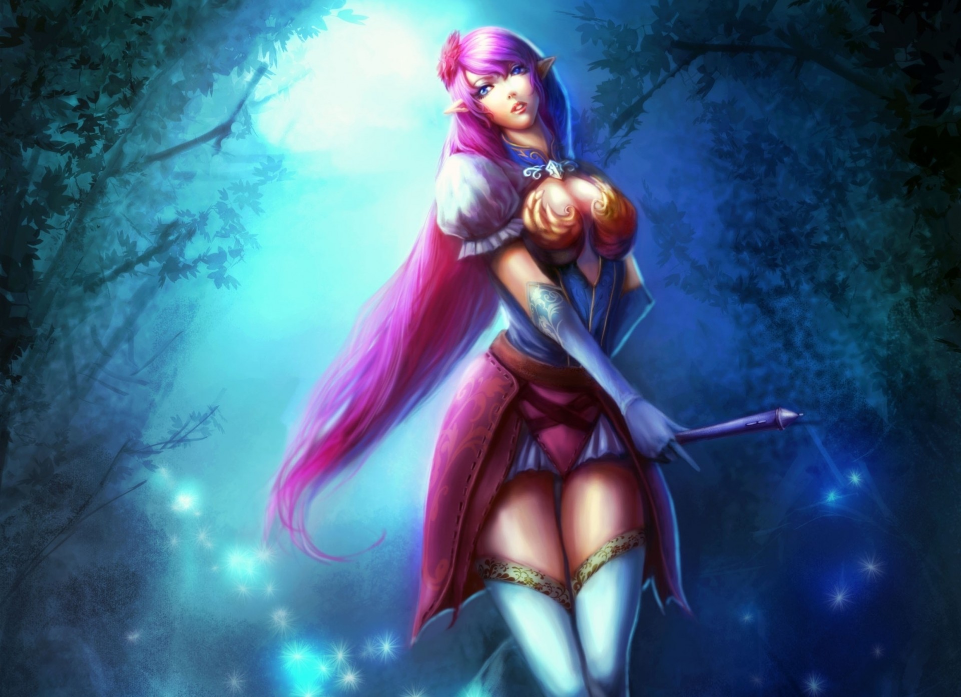 Elfe fille aux cheveux blancs avec un arc dans les mains de l'artElfe fille aux cheveux blancs avec un arc dans les mains de l'art