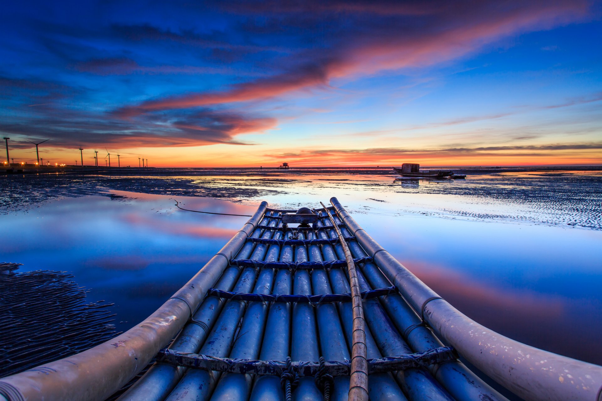 Moulins à vent à l'horizon. nuages au coucher du soleilMoulins à vent à l'horizon. Nuages au coucher du soleil