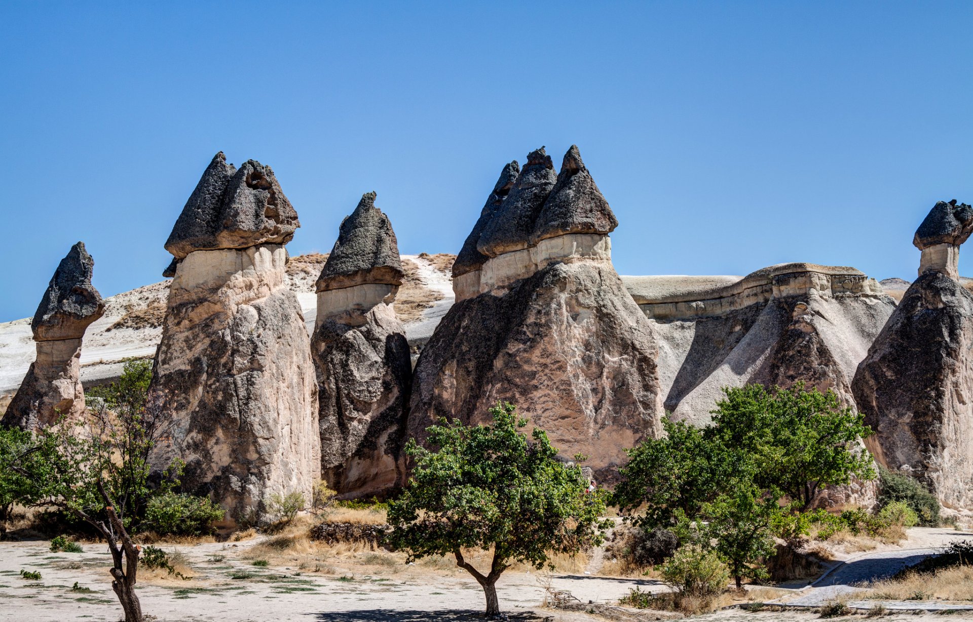 Ciel nuageux. Falaises. Verts sur la terre orange