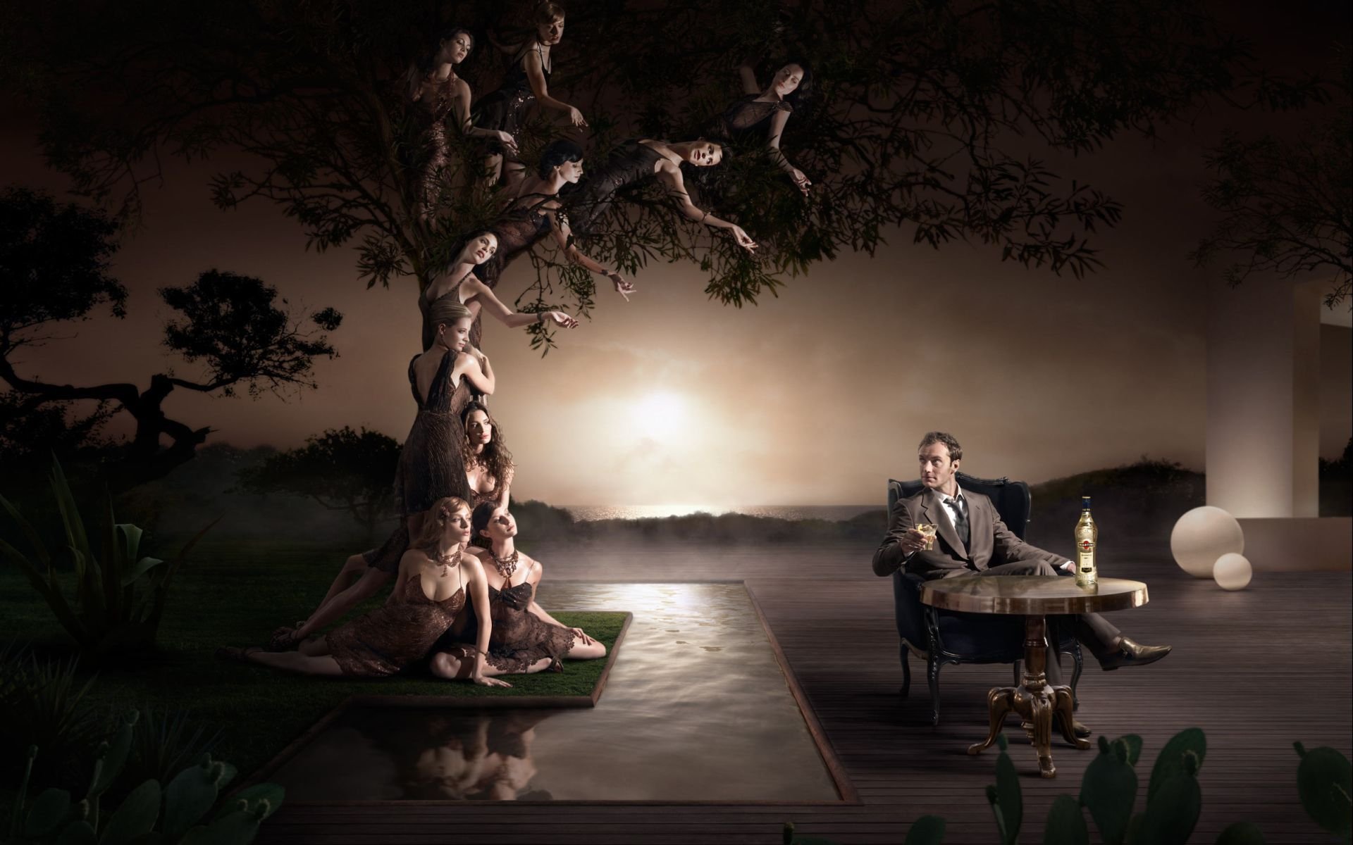 Art de l'homme assis à la table et se penche sur les femmes sur l'arbre