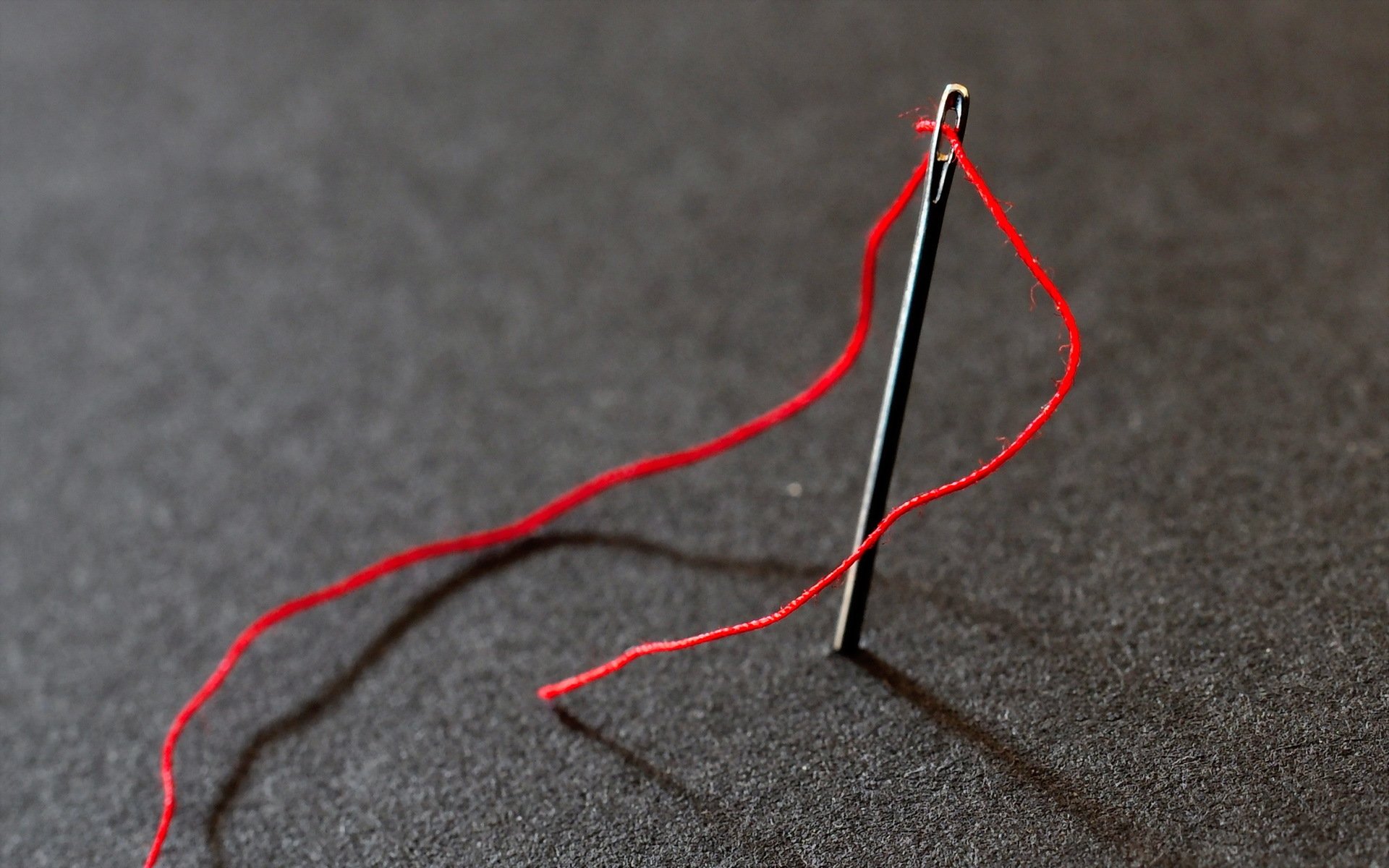 Fille aux cheveux rouges attachée avec un fil rougeFille aux cheveux rouges attachée avec un fil rouge