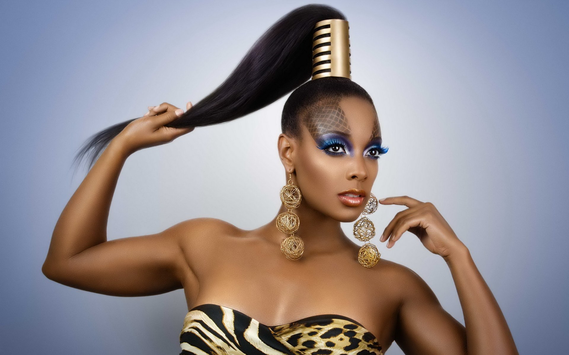 Photo d'une fille avec un maquillage inhabituel et des papillonsPhoto d'une fille avec un maquillage inhabituel et des papillons