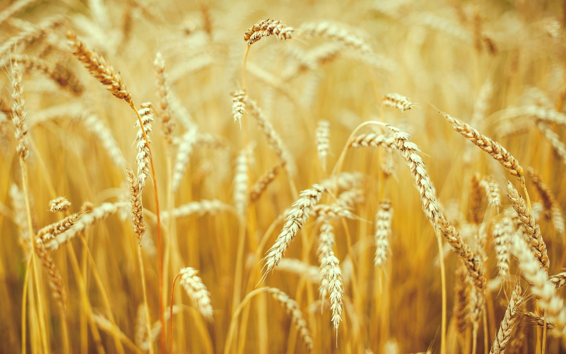 Gros plan de gouttes de pluie accroché sur les brins d'herbe automne rouge-orange