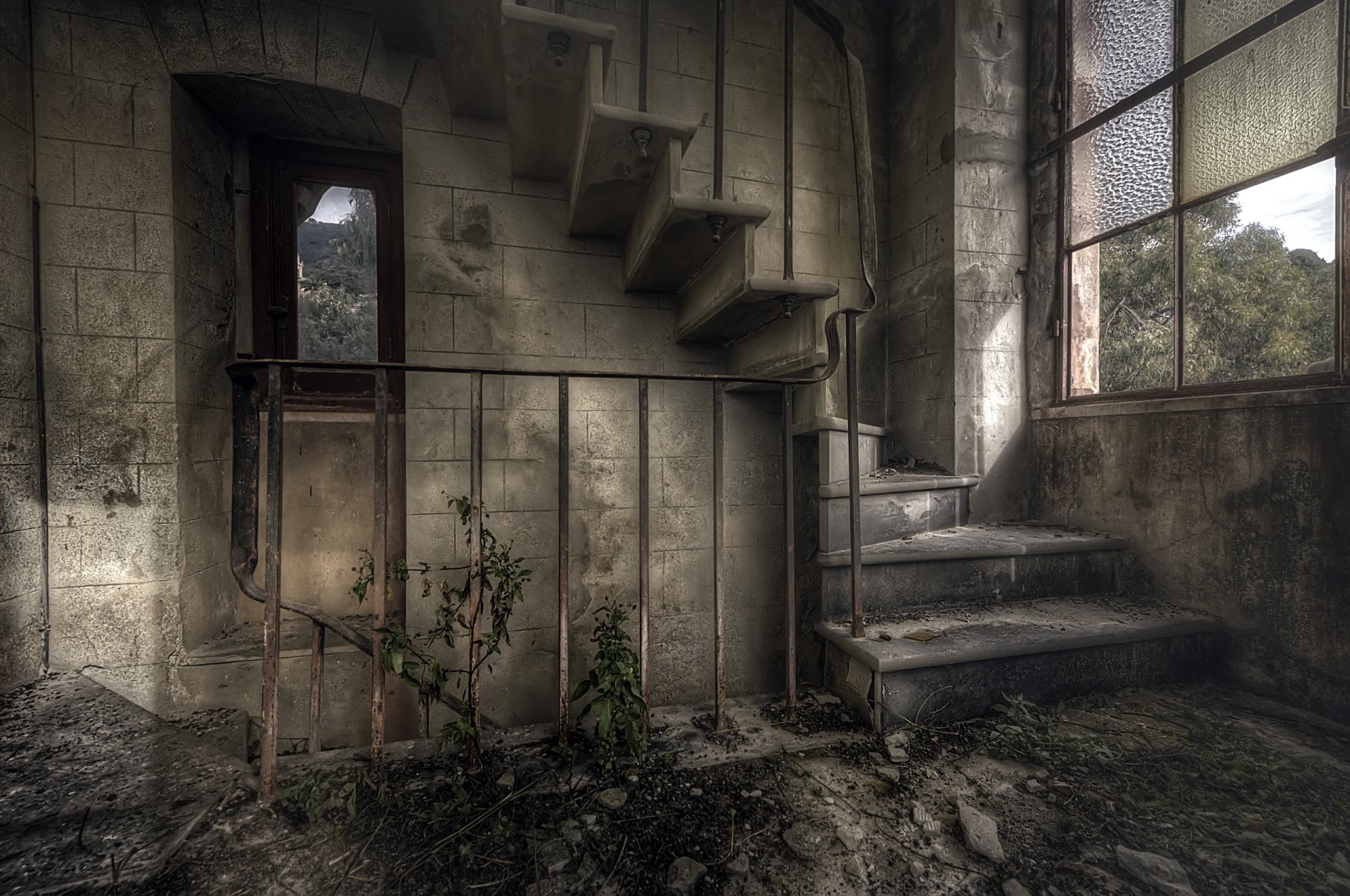 La surface de l'eau de la piscine vide et la vue de la ville depuis ses fenêtresLa surface de l'eau de la piscine vide et la vue de la ville depuis ses fenêtres