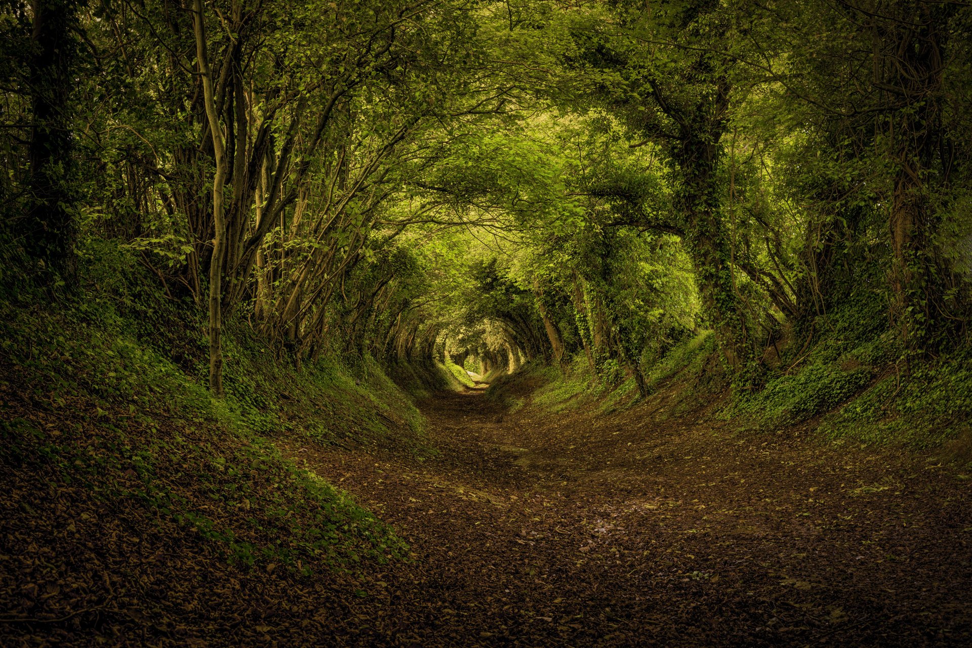 Tunnel d'automne sur le sentier forestier