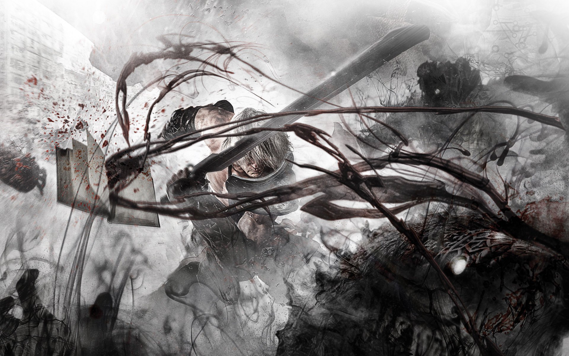 Un homme frappe avec une épée dans un stand pathétique
